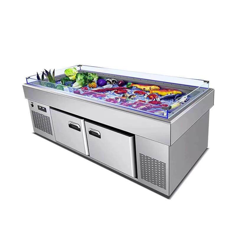 📚 冰台不锈钢商用超市展示柜水产鱼肉冷冻柜点菜柜铜管制冷保鲜柜