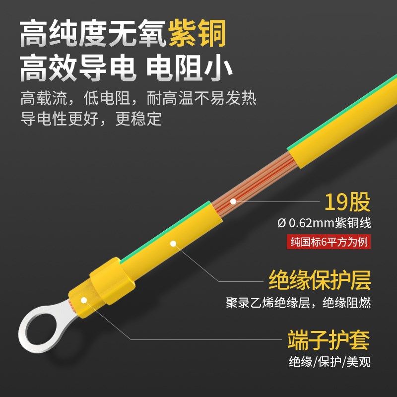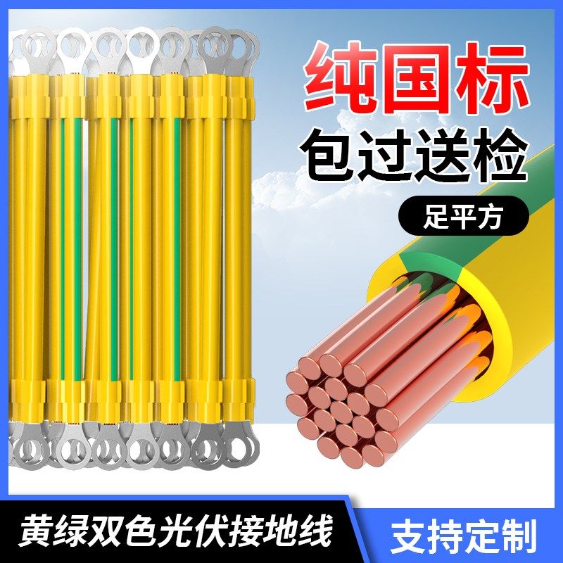 📚 国标黄绿双色光伏接地线软铜线2.5配电箱4/6平方桥架连接线跨接线