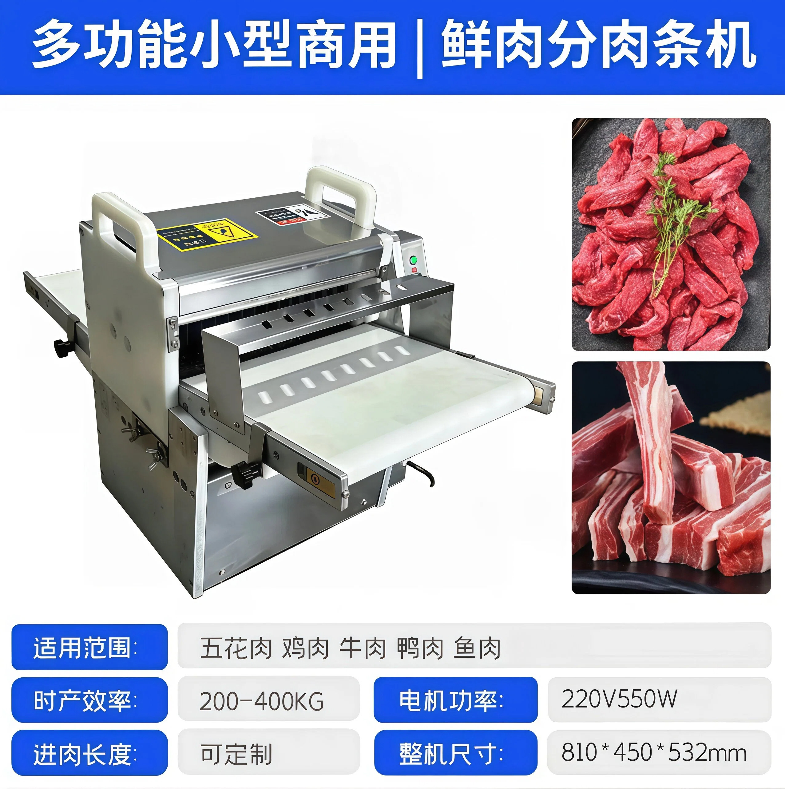 📚 商用鲜肉分条机牛羊猪五花肉切条切块机鸡鸭鱼鹅禽类开条切块机
