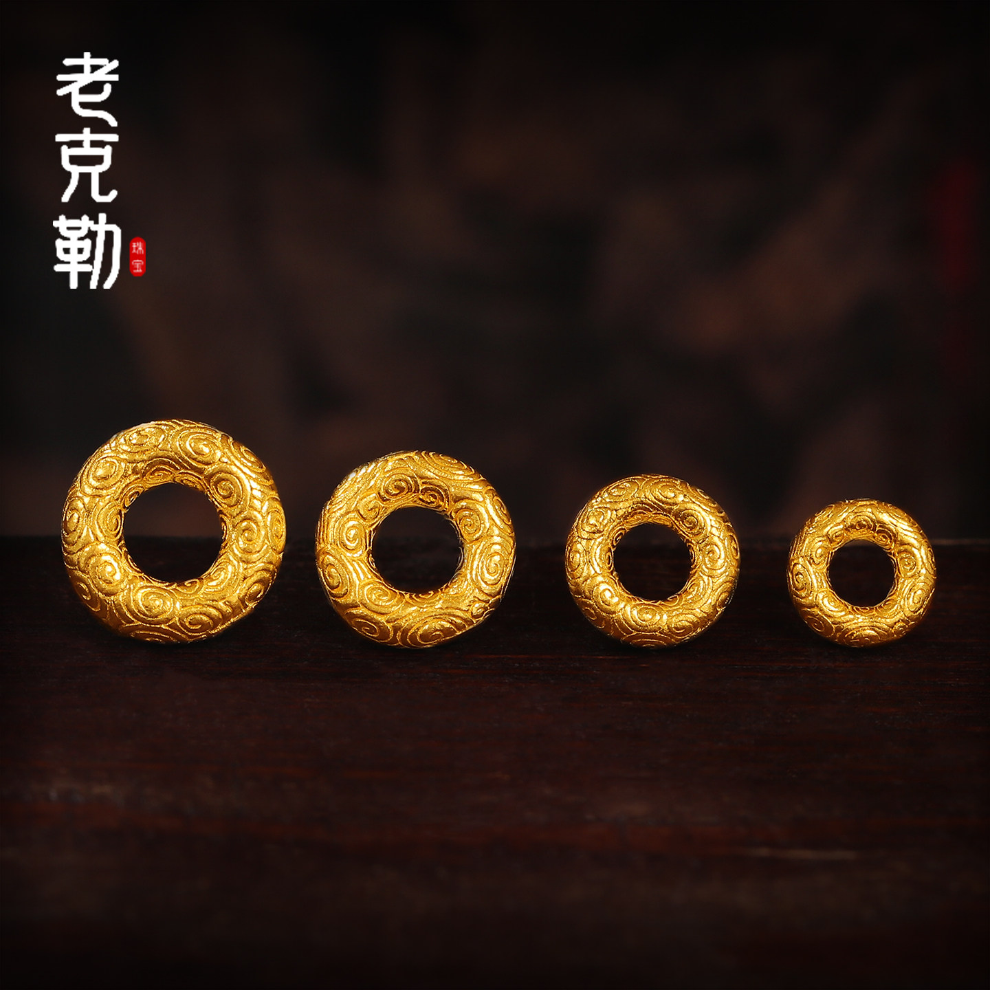 📚 老克勒古法黄金祥云圈同心圆编织手链手串999足金平安扣圆环配饰