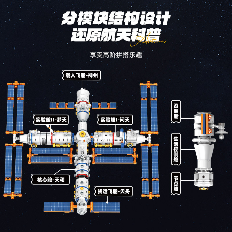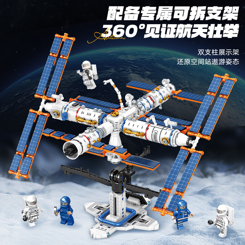 📚 中国航天卫星空间站积木天宫一号拼装6模型12岁以上玩具男孩礼品