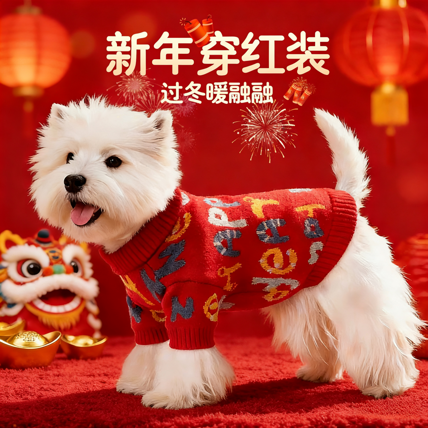 📚 宠物狗狗衣服喜庆冬装毛衣泰迪比熊雪纳瑞小型犬新款小狗过年衣服