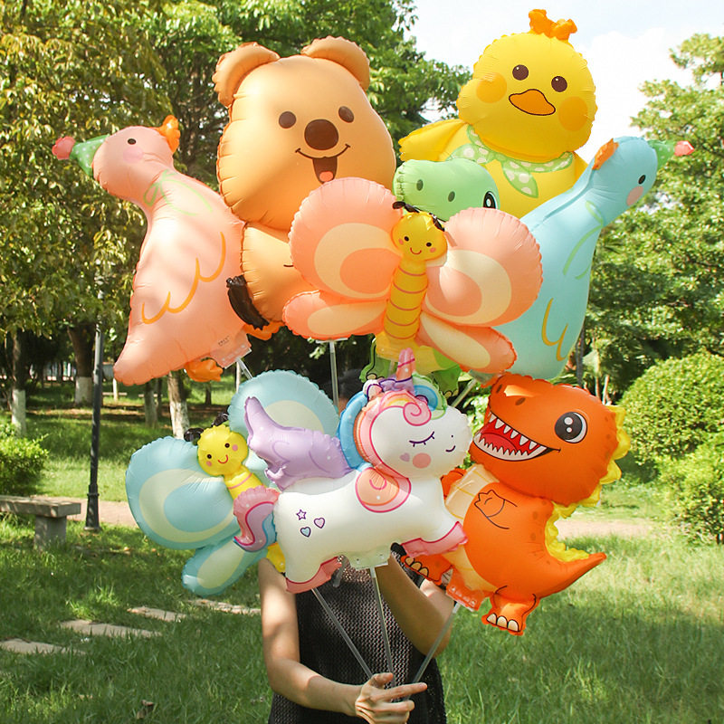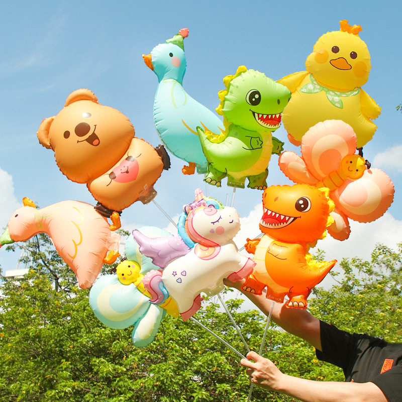 📚 哑光卡通动物造型夹片气球手持杆棒学校幼儿园地推活动布置装饰品