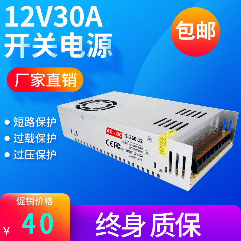 📚 220V转变12V30A直流开关电源 360W变压器LED灯带监控电源集中供电
