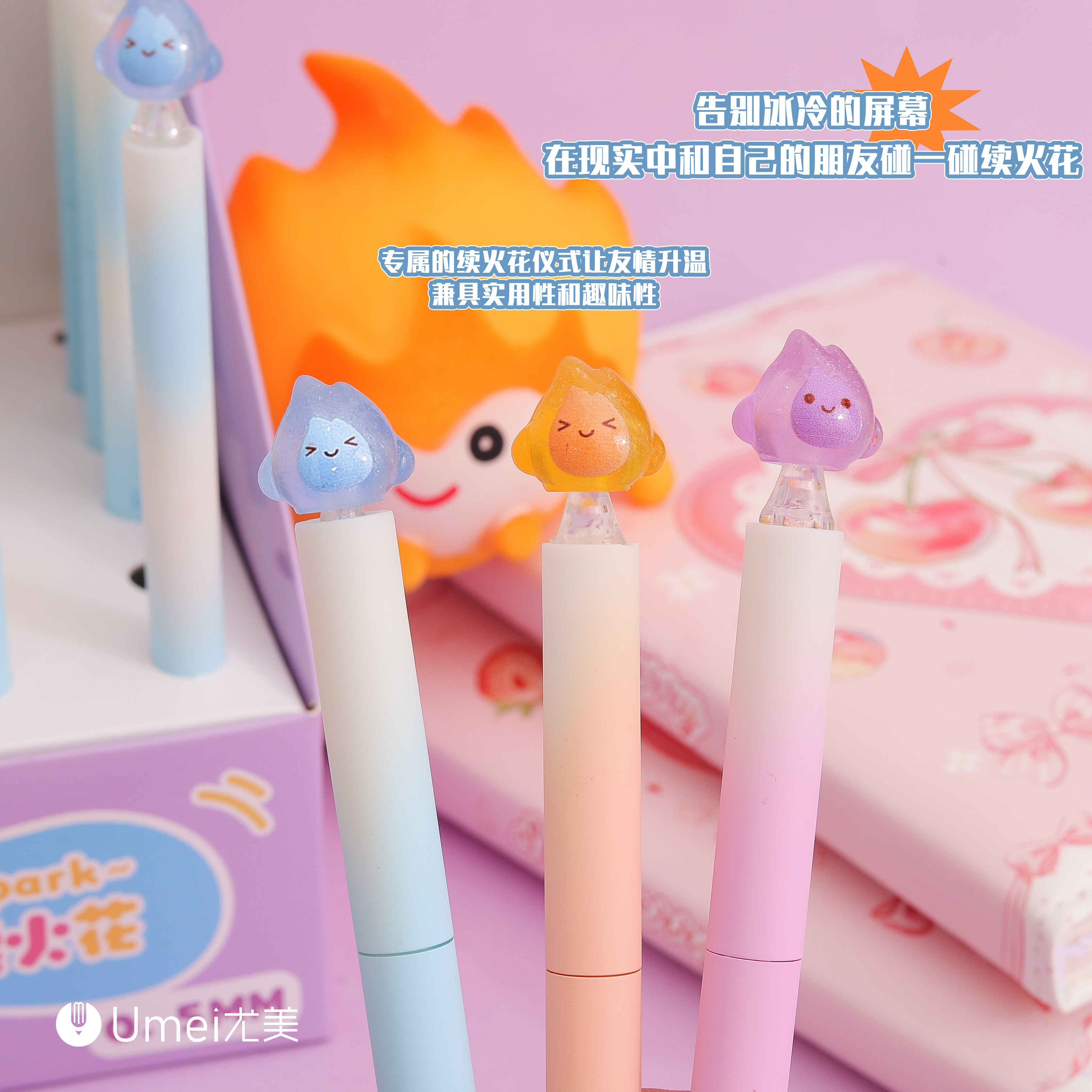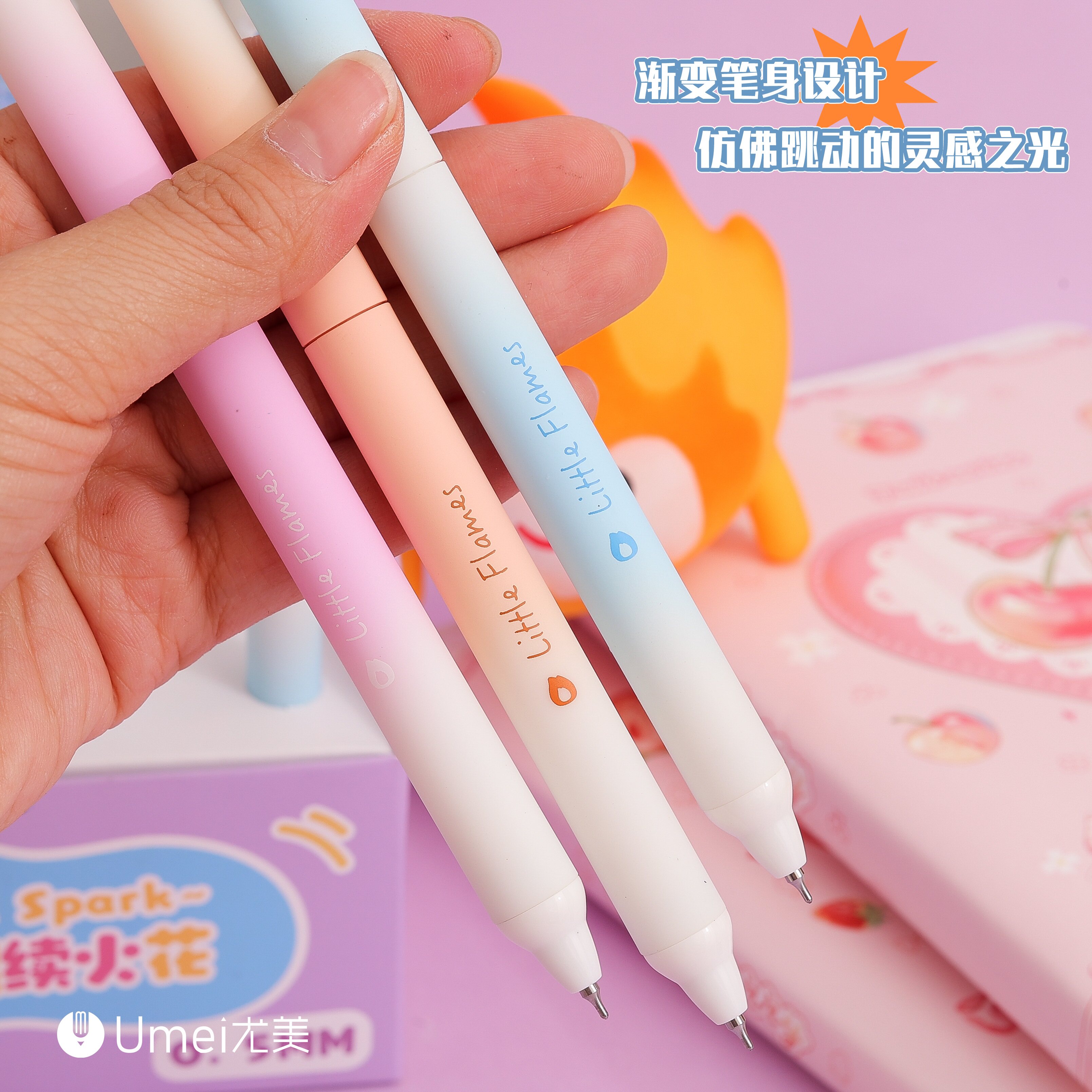 📚 尤美小火苗扭扭笔旋转出芯中性笔小学生热可擦晶蓝水笔高颜值渐变色闺蜜速干刷题笔转转笔黑笔签字笔圆珠笔芯