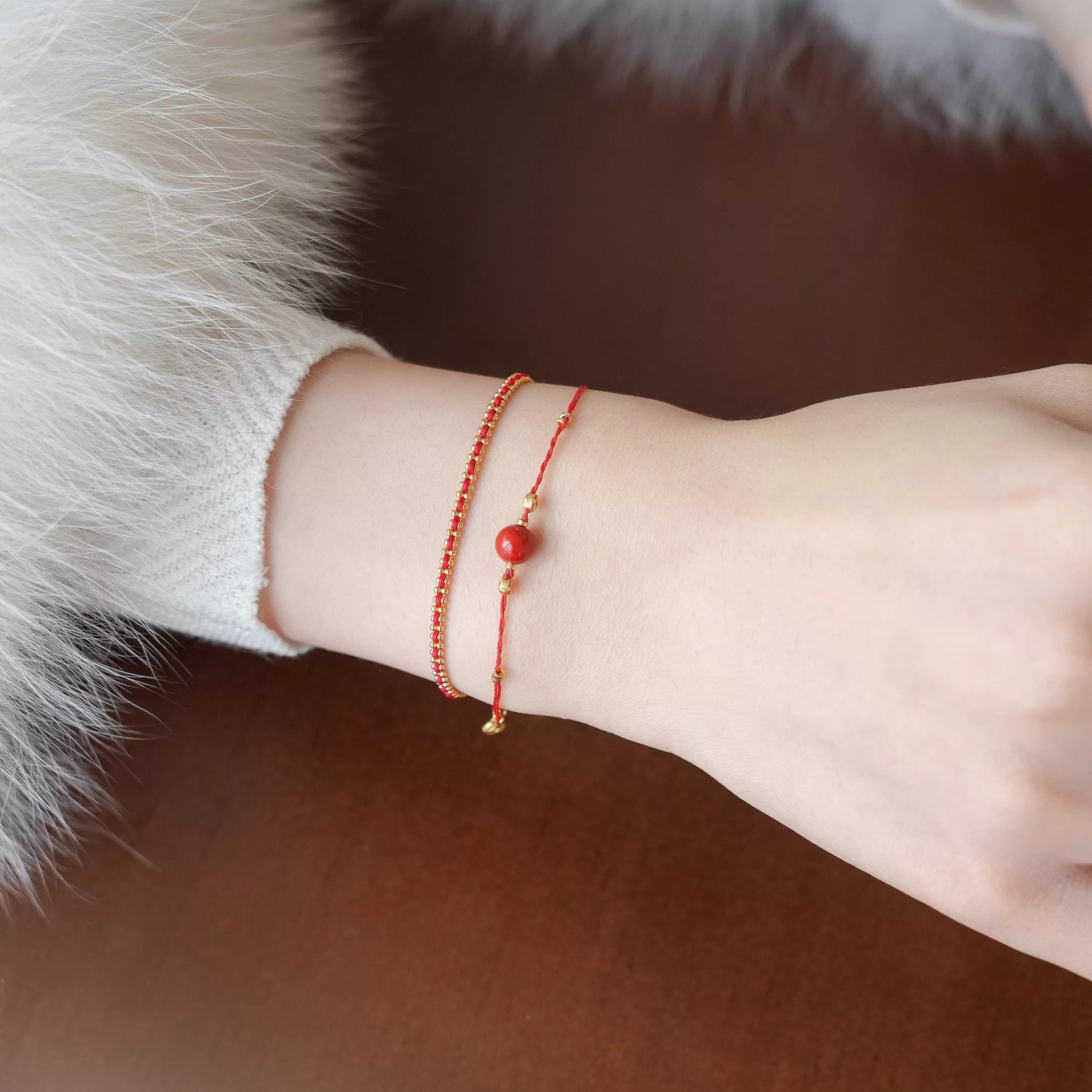 📚 QIANTAO「映喜」原创925银度18k金红绳手链好运本命年红平安礼物
