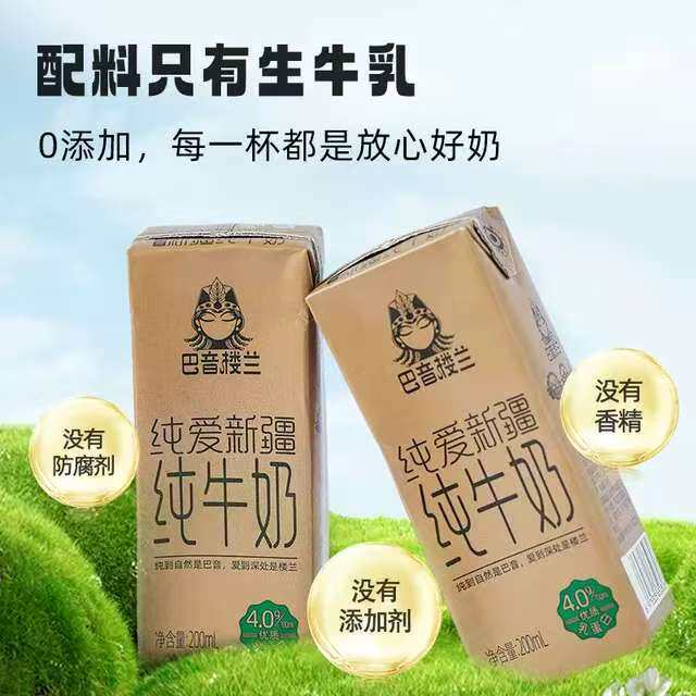📚 巴音楼兰纯爱新疆纯牛奶4.0g乳蛋白儿童学生成人营养早餐奶16盒装