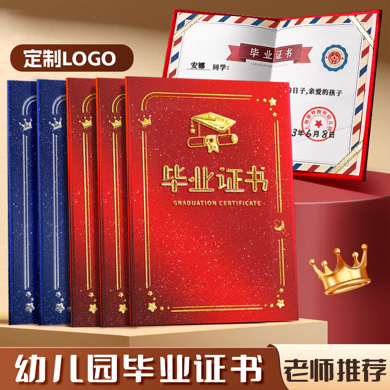 📚 幼儿园毕业证书纪念册大班小朋友毕业册奖状结业证书离园册外壳封面定制做LOGO园标卡通创意奖状离园证礼物
