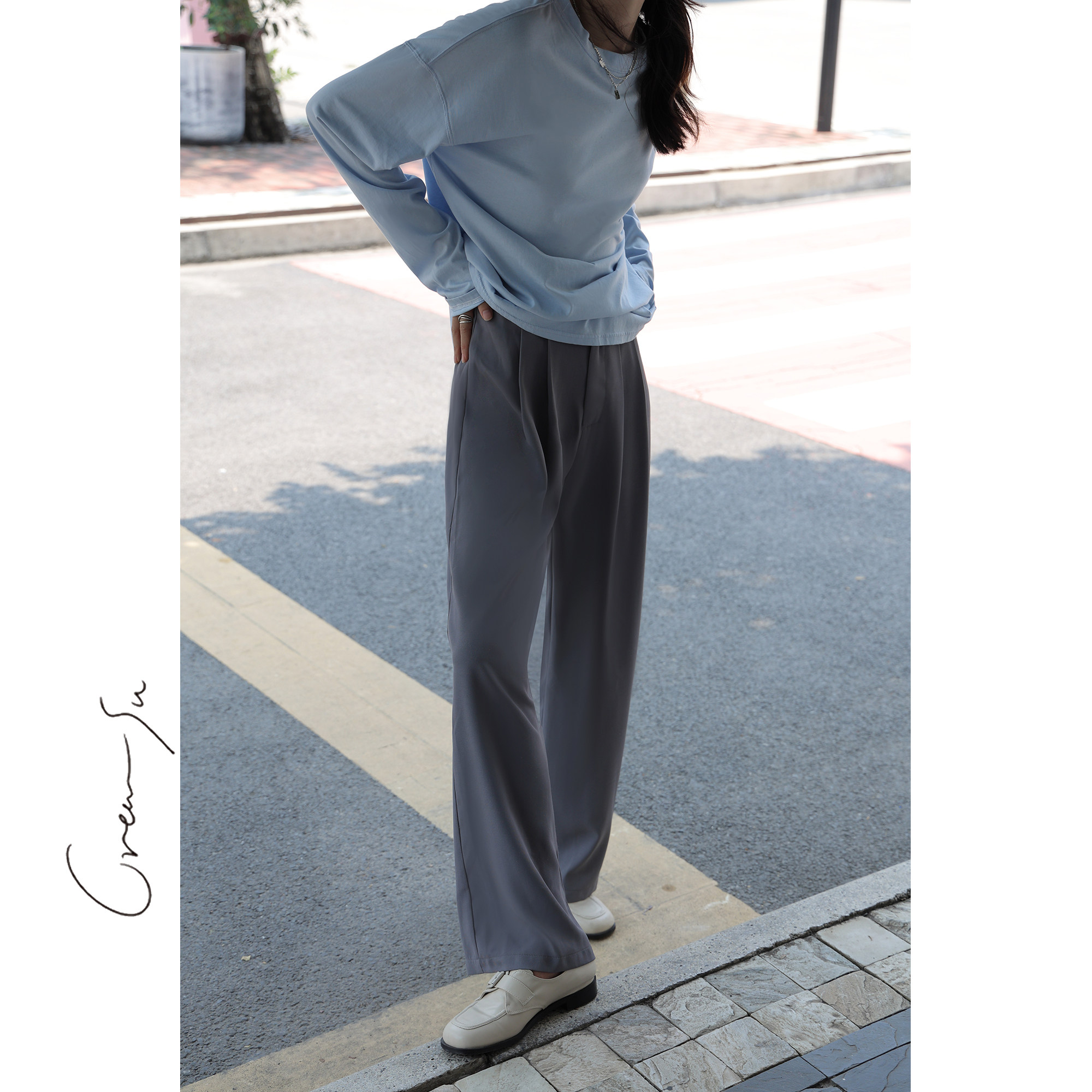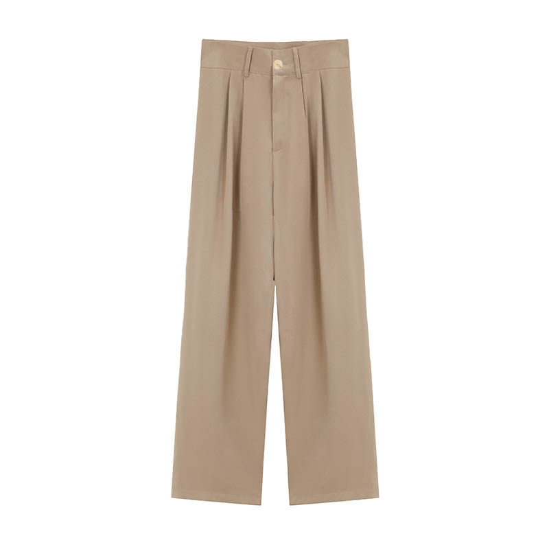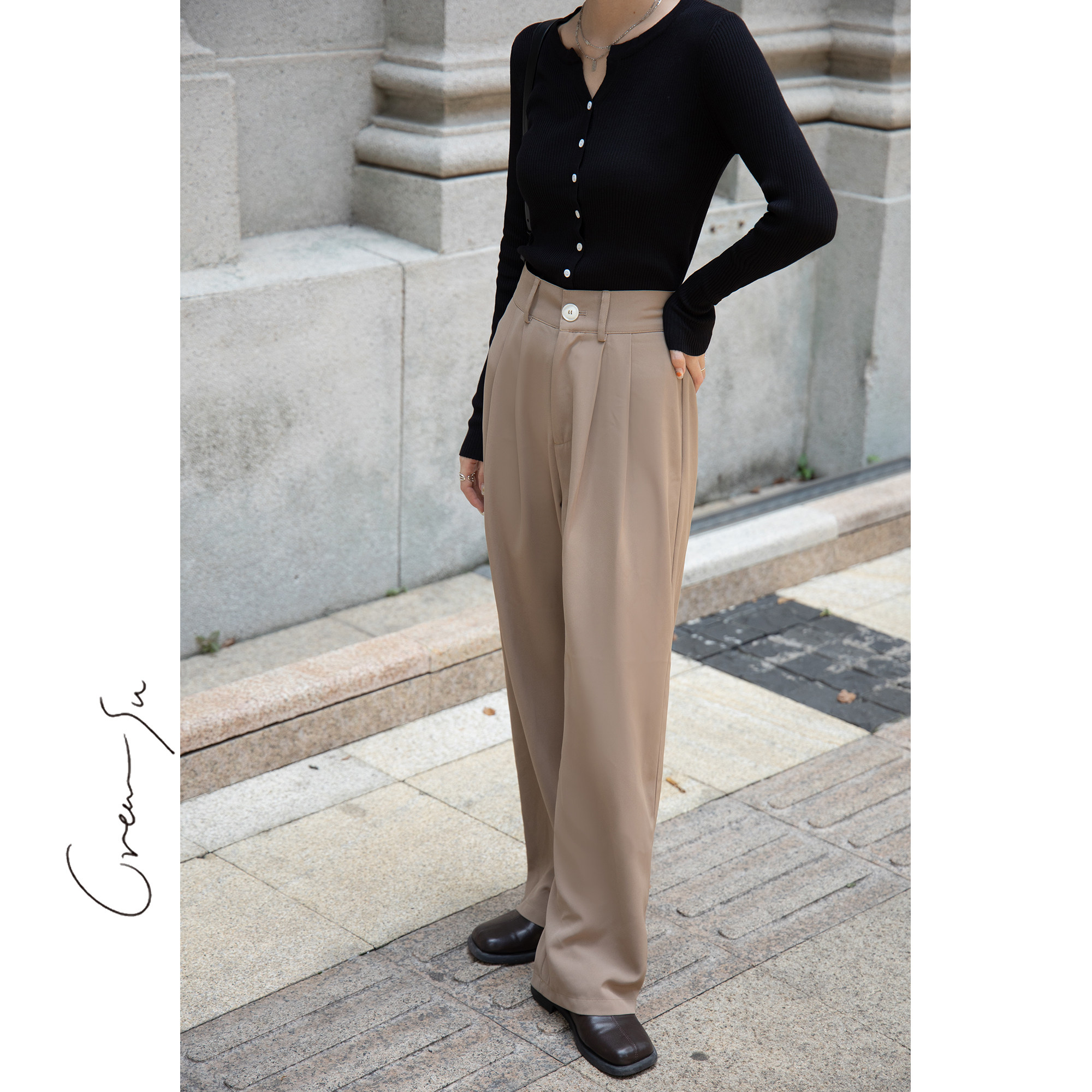 📚 Creamsu叙白 咖色垂感西装裤女高腰显瘦休闲裤春秋直筒宽松拖地裤