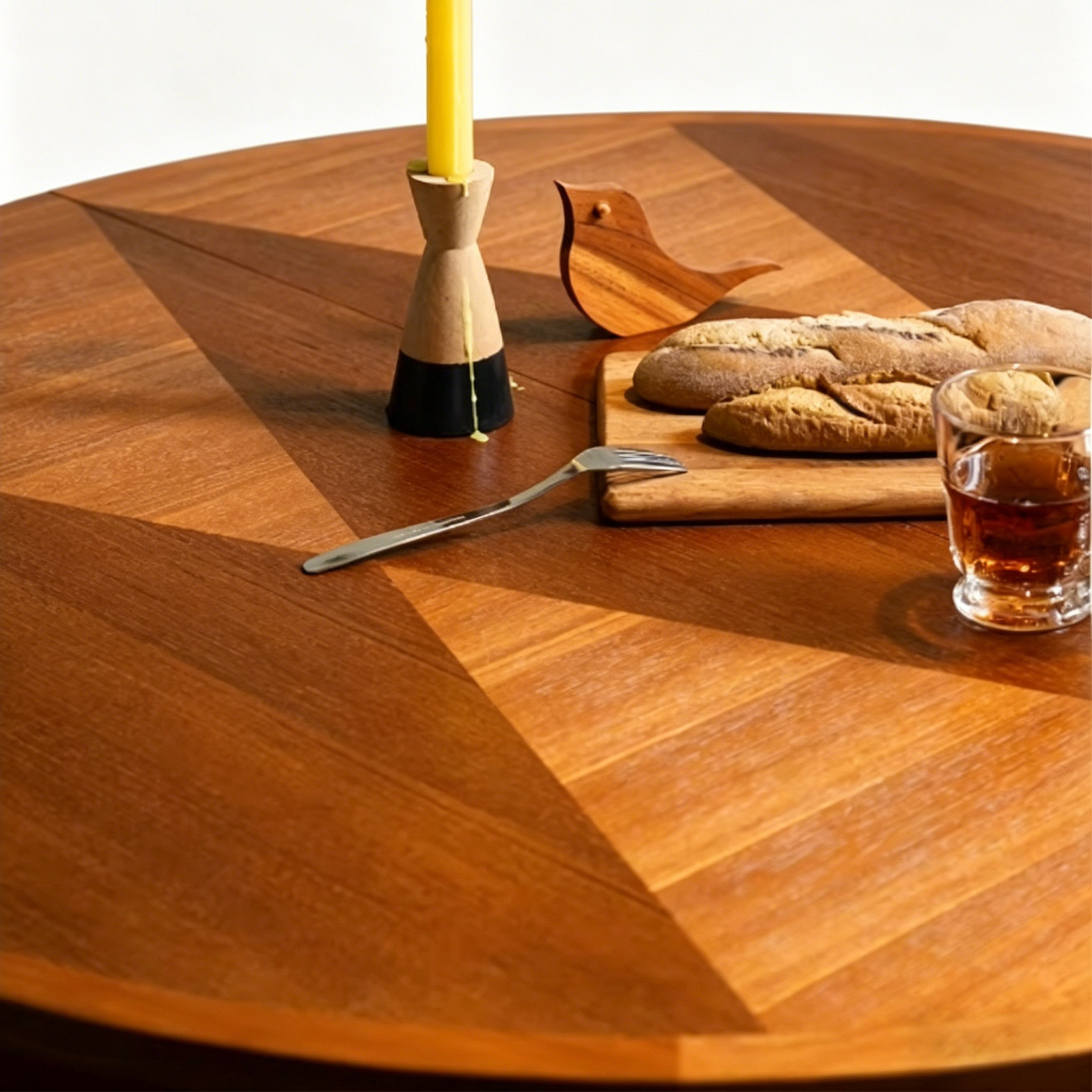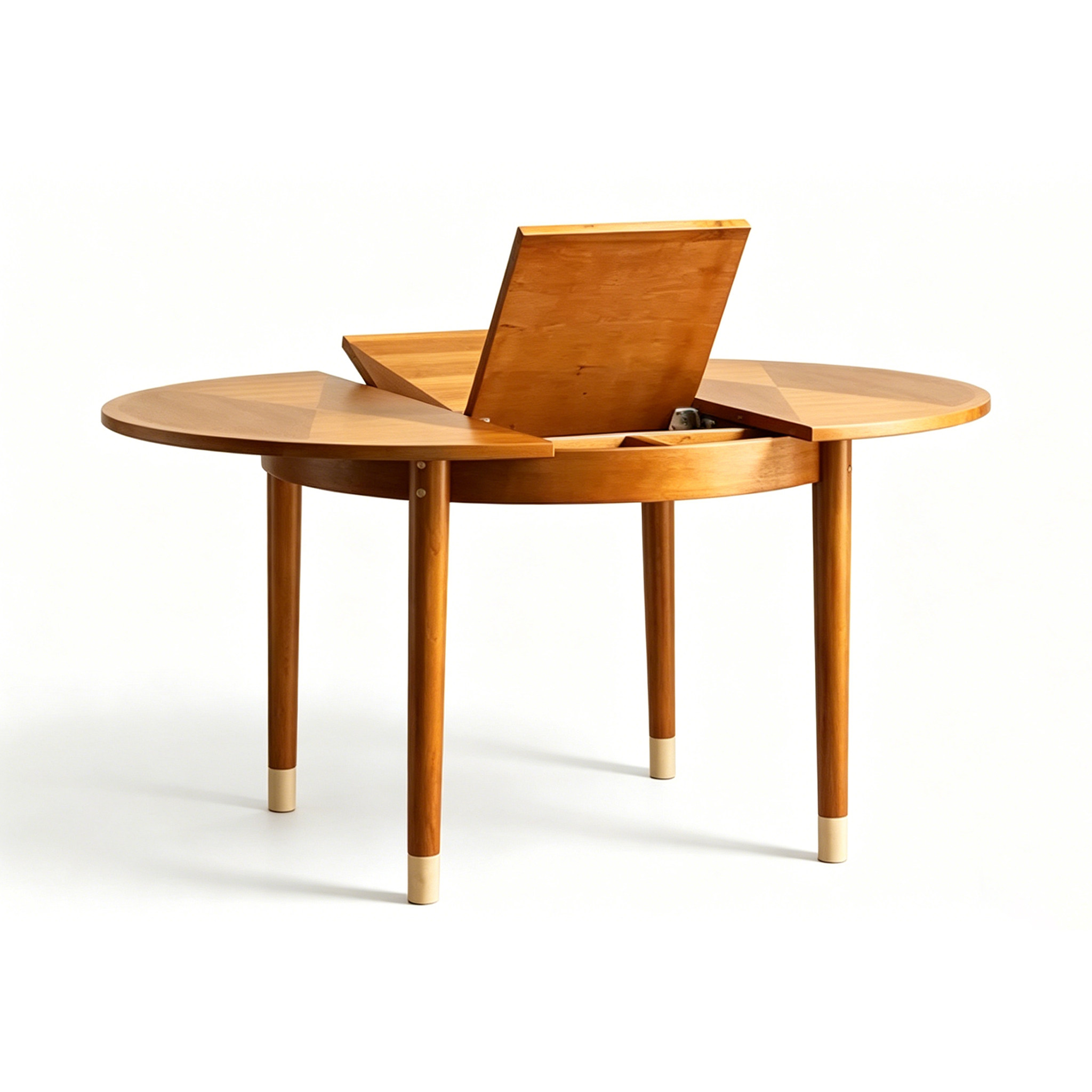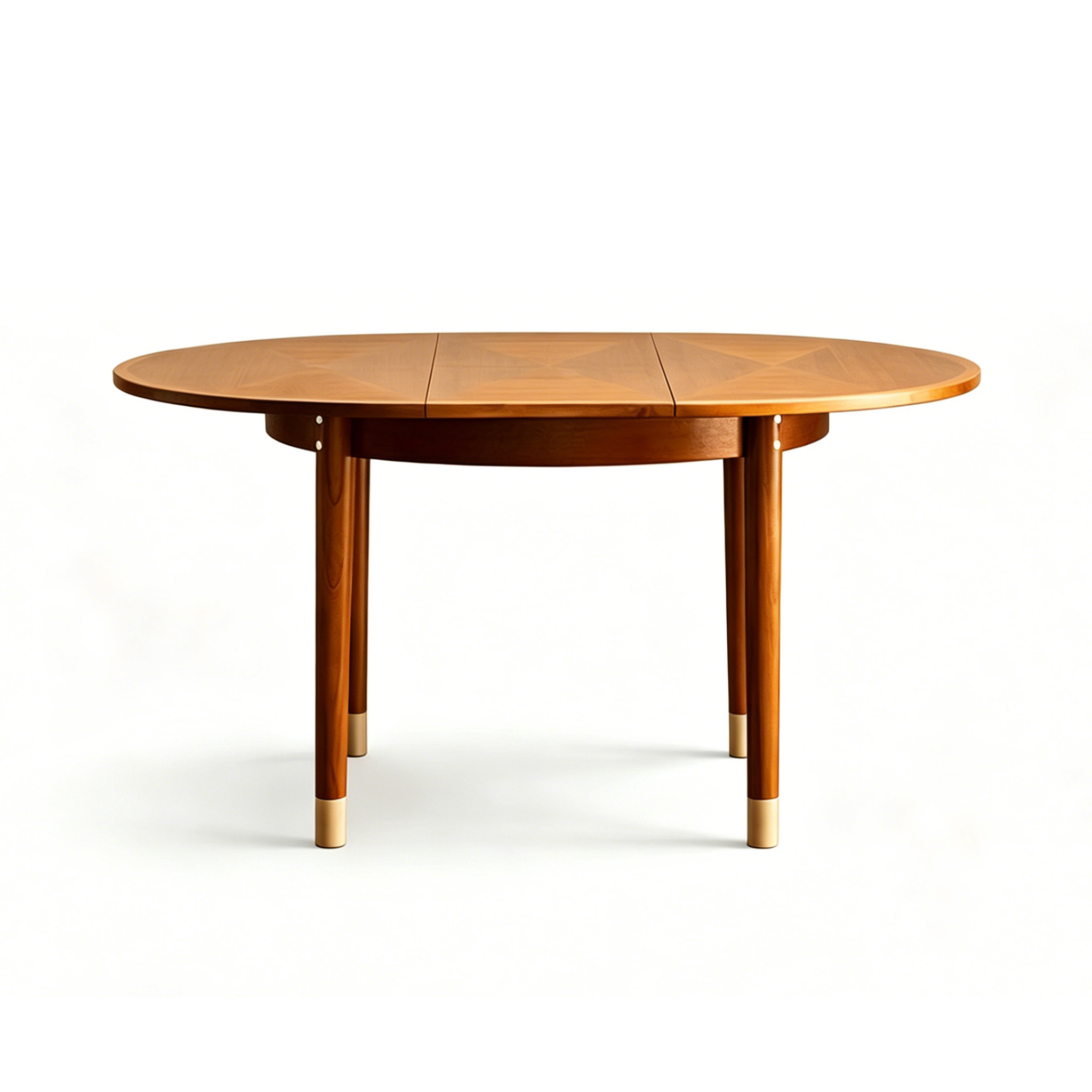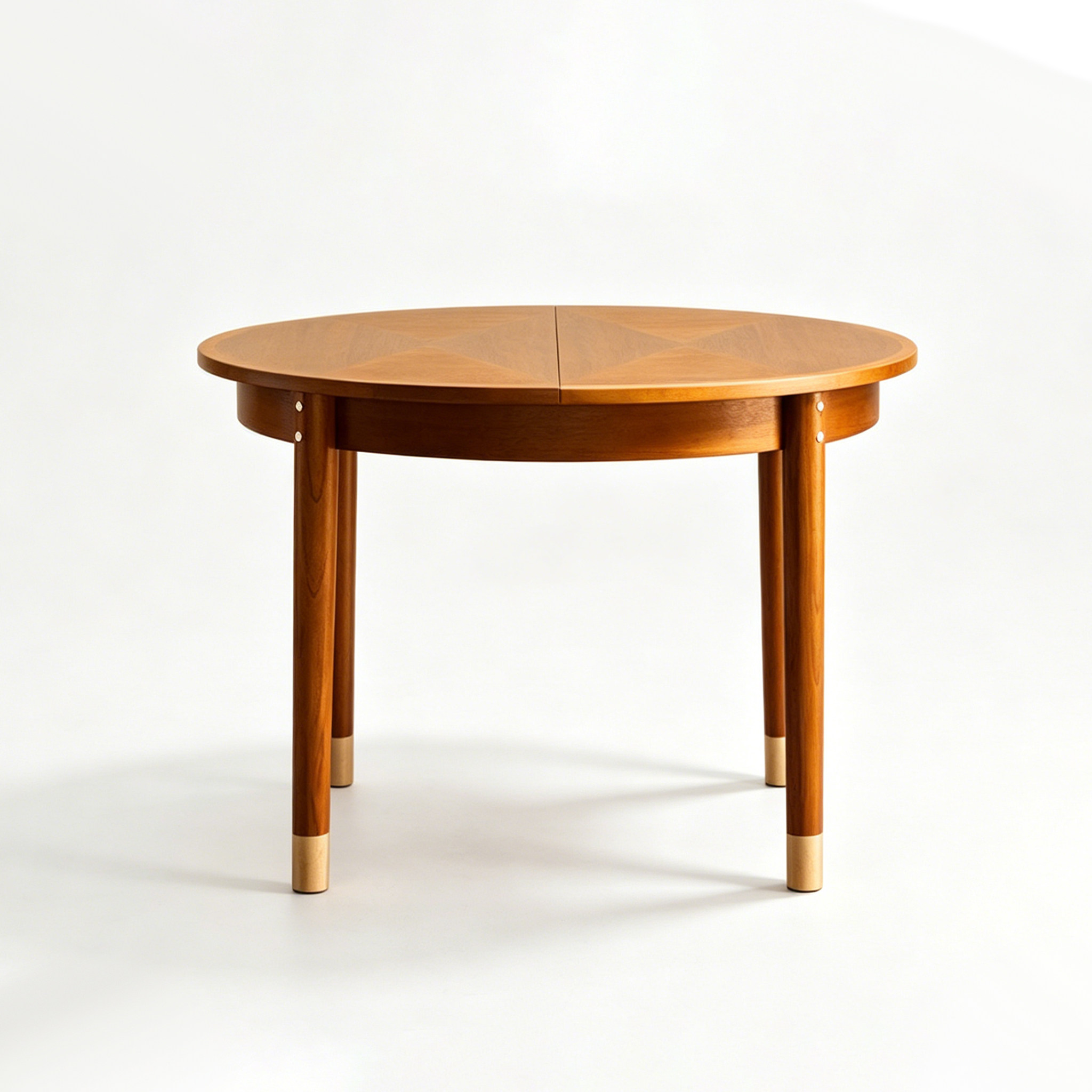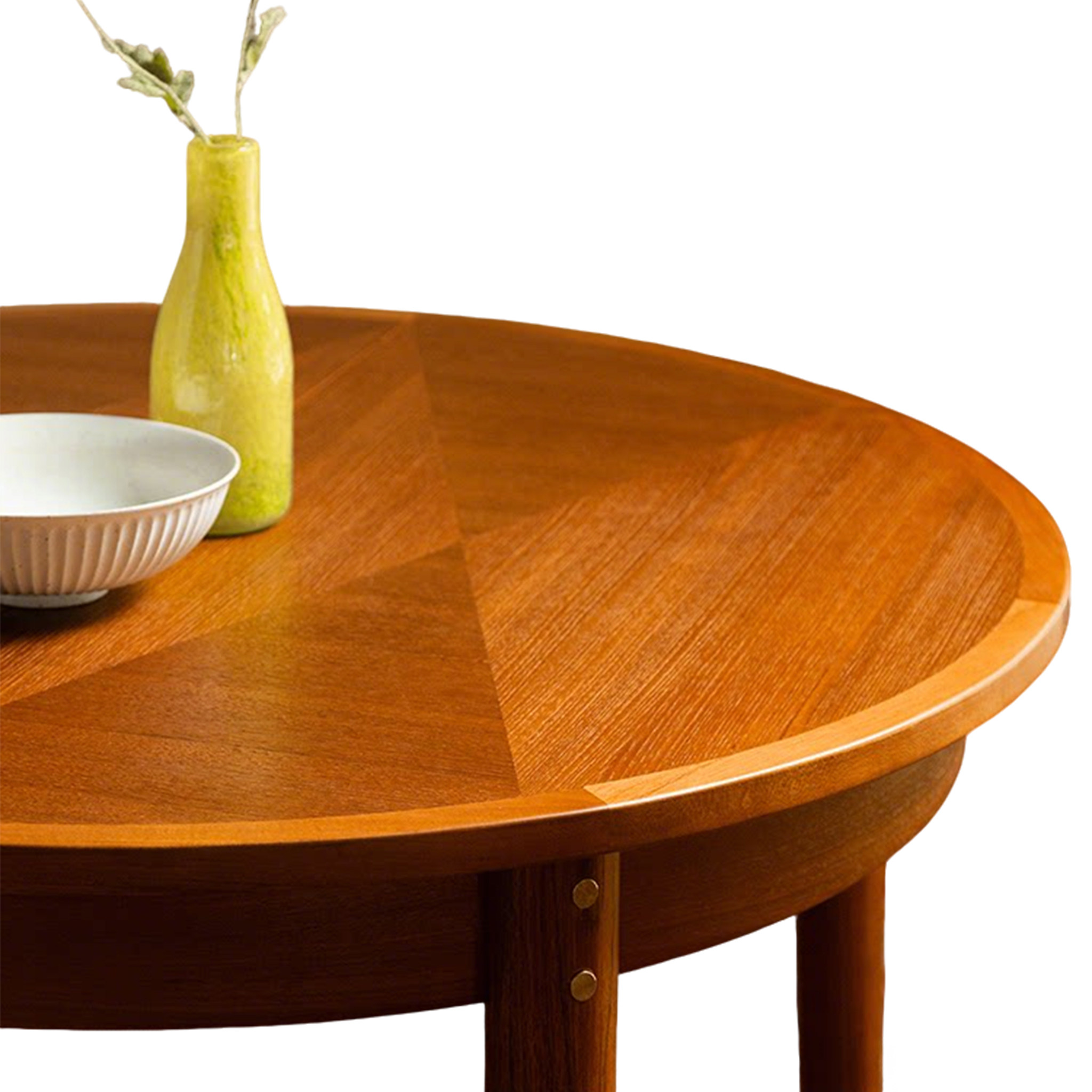📚 实木伸缩餐桌小户型家用餐桌中古复古风柚木圆形吃饭桌
