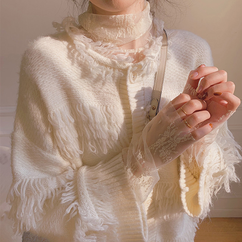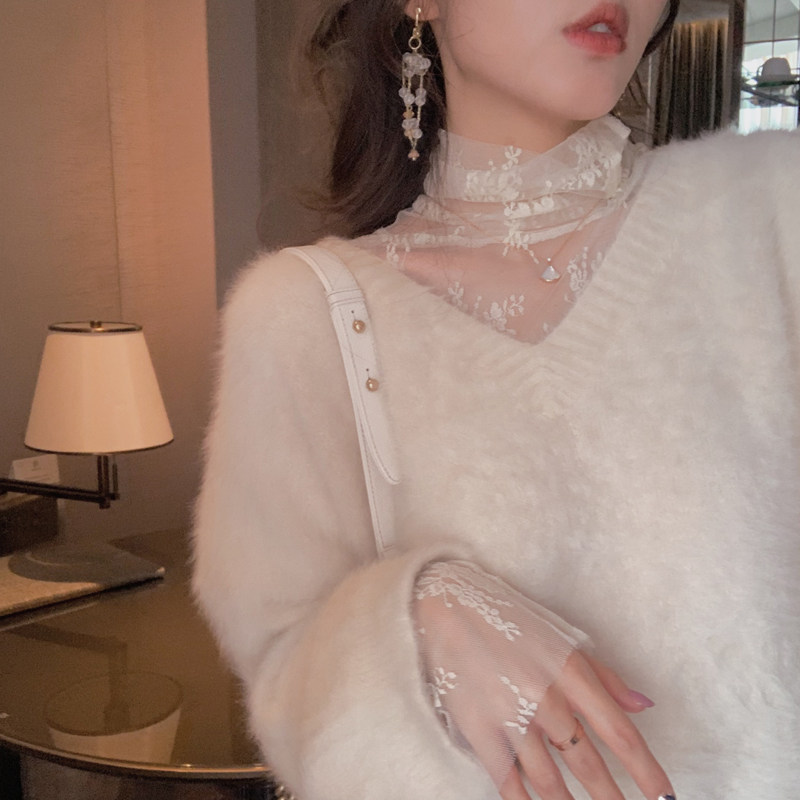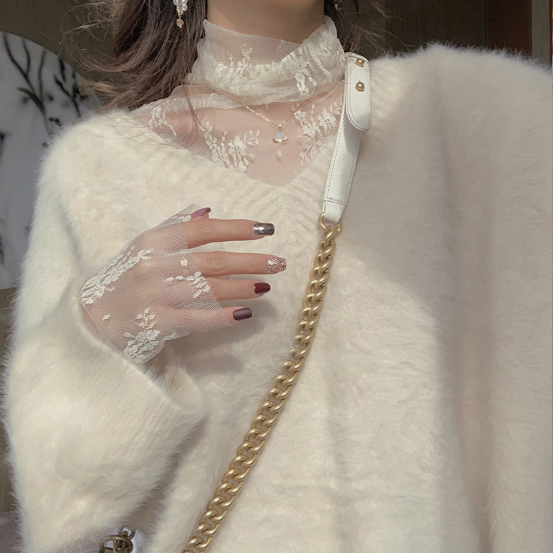 📚 定制仙女网纱长袖上衣超仙高领蕾丝打底衫女秋冬洋气内搭