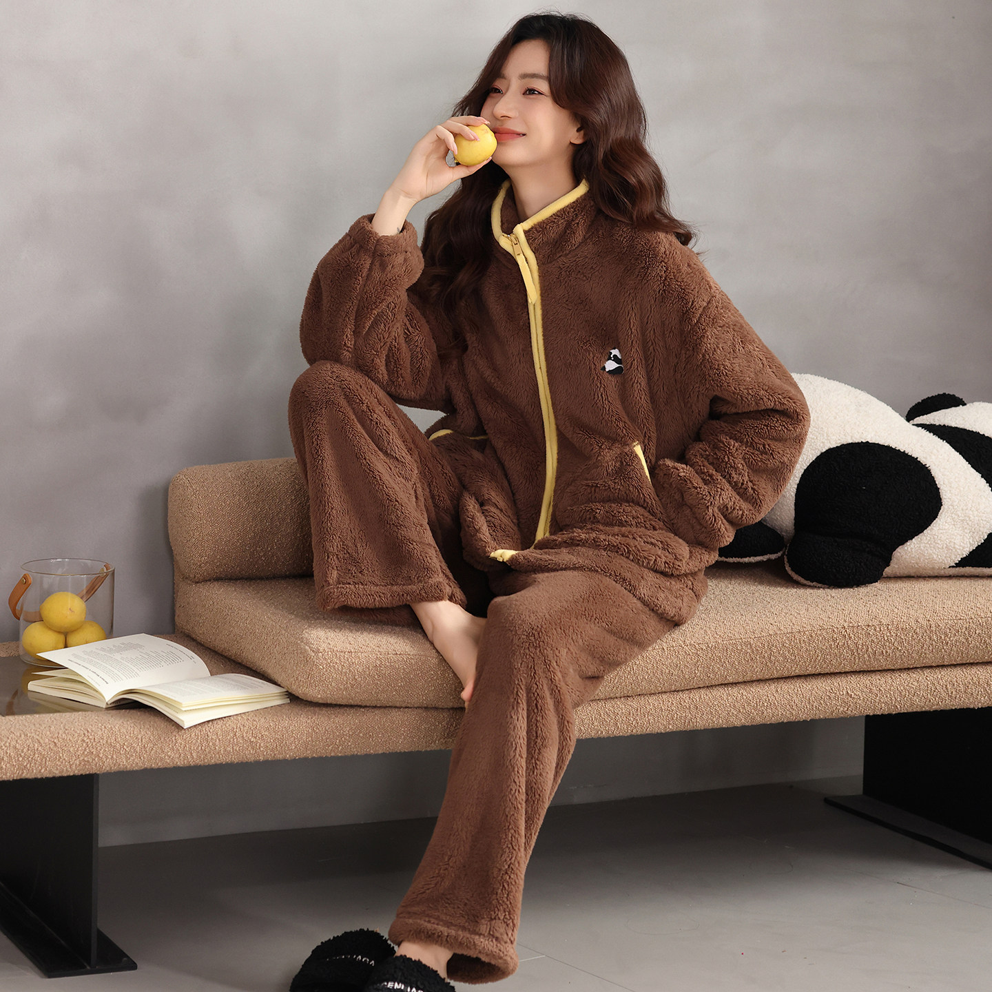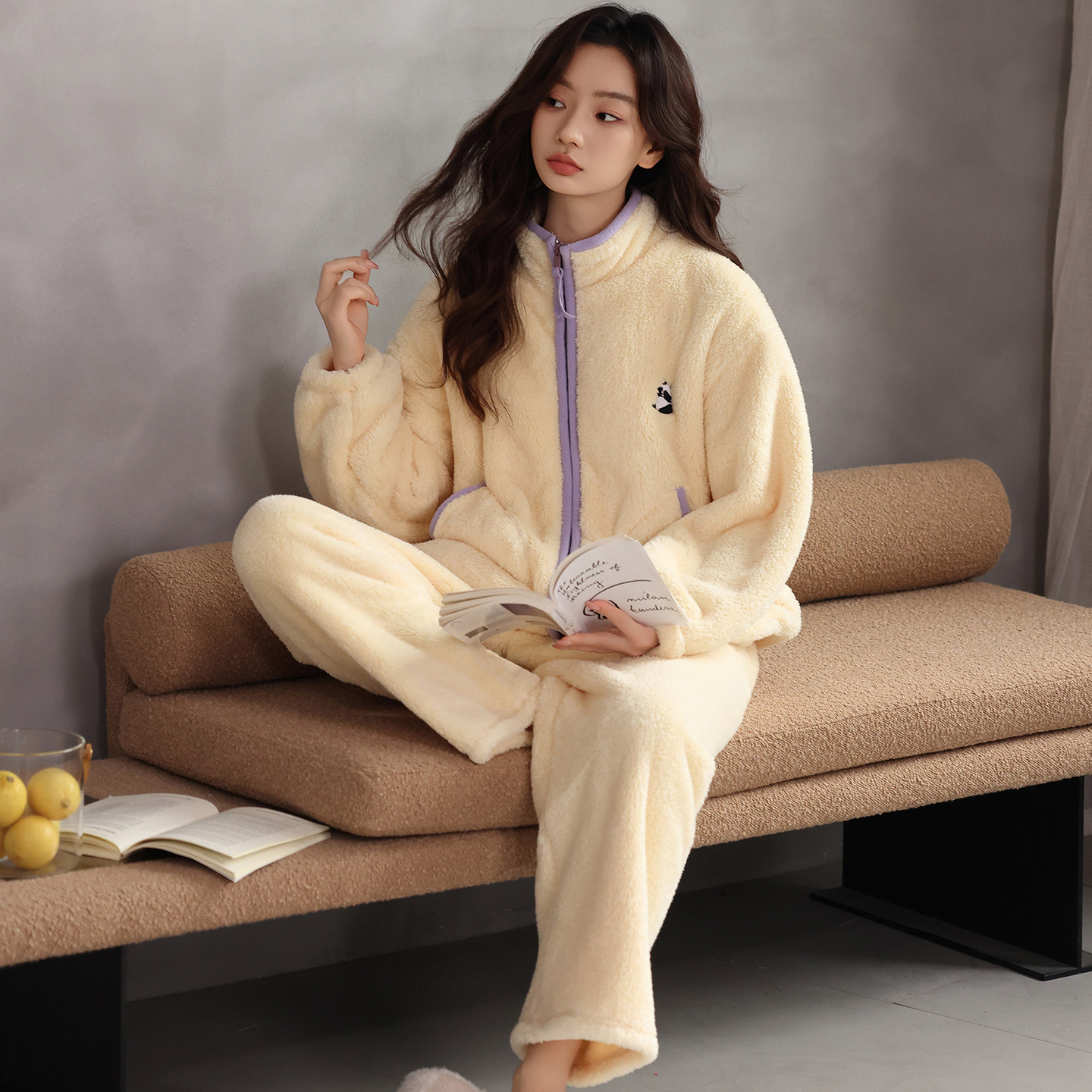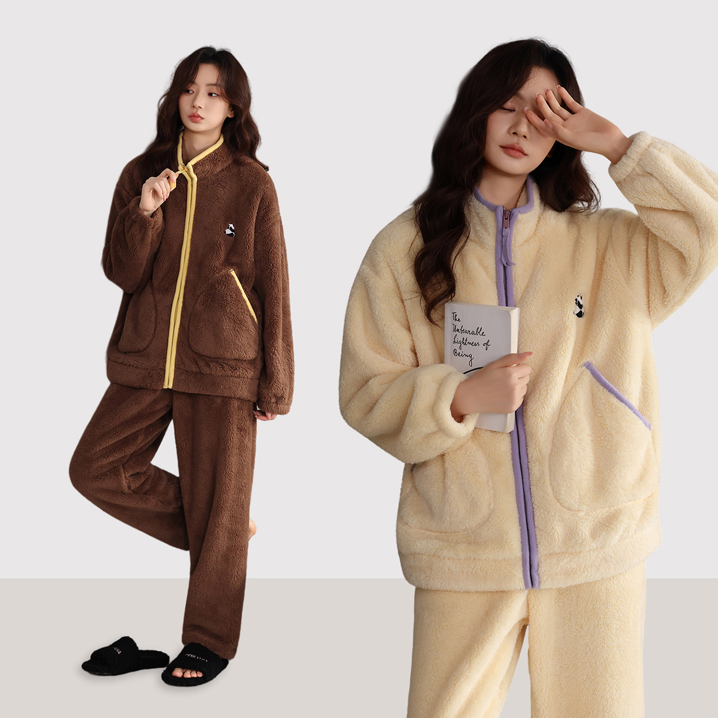 📚 秋冬新款双面珊瑚绒加厚女款睡衣两件套宽松慵懒毛绒绒家居服套装