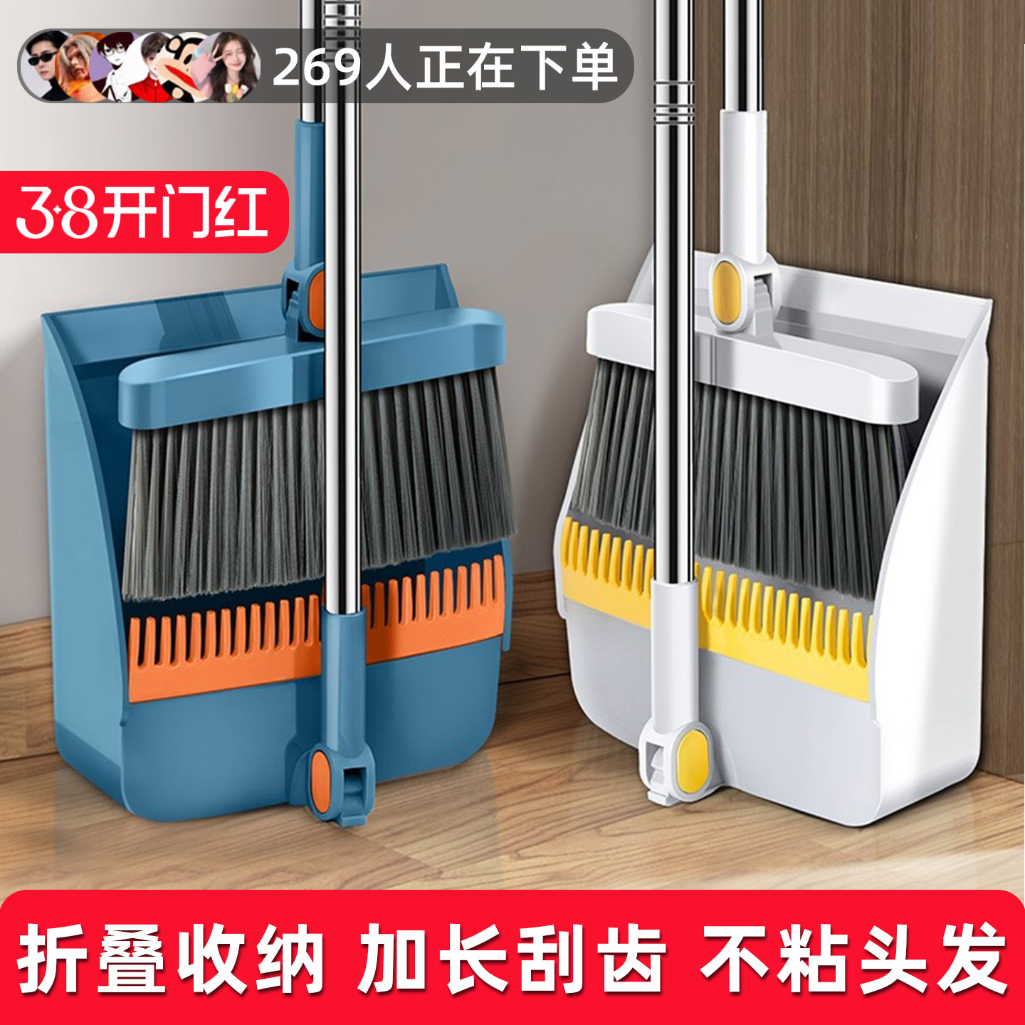 📚 新款扫把套装簸箕家用可折叠易收纳扫帚套装带刮齿不沾头发三件套