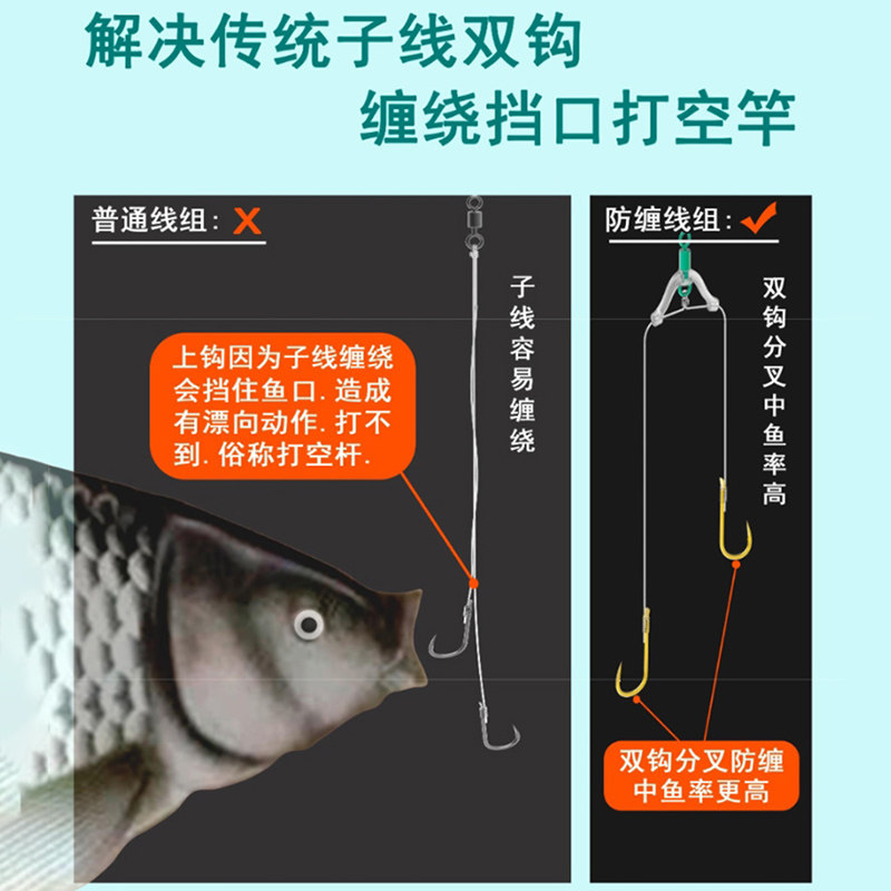 📚 新型防缠绕卸力子线夹八字环弹簧美式转环硅胶子线防缠豆分叉线器