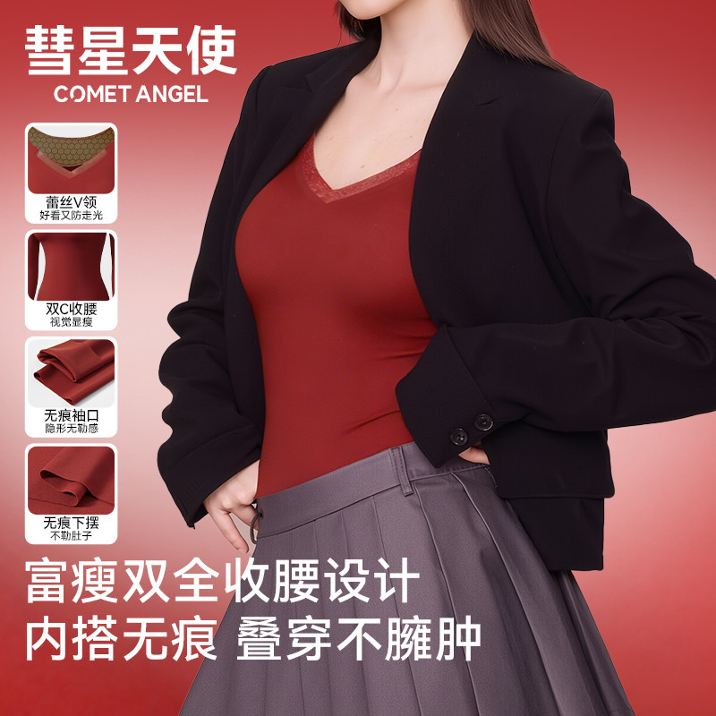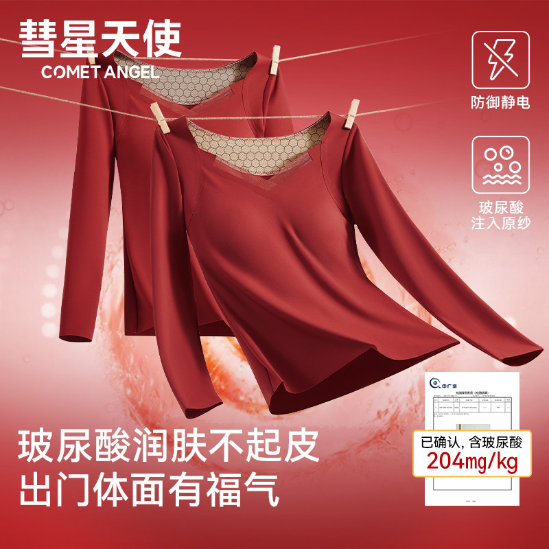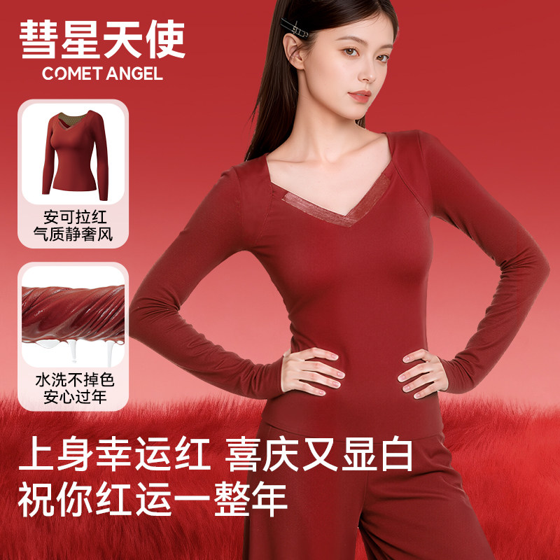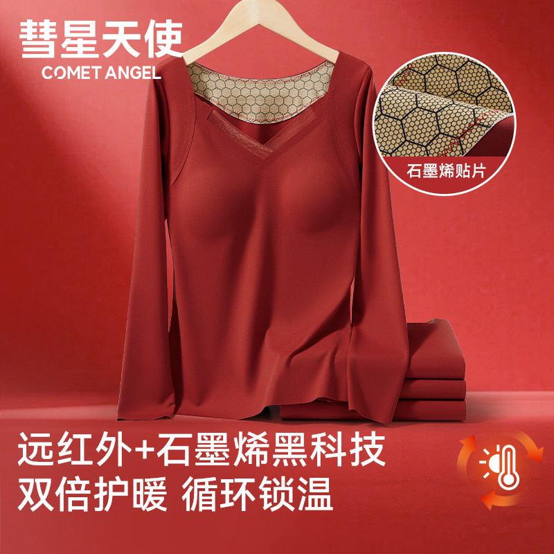 📚 彗星天使新年红装女士保暖衣带胸垫打底衣舒适无痕修身肌底衣长袖