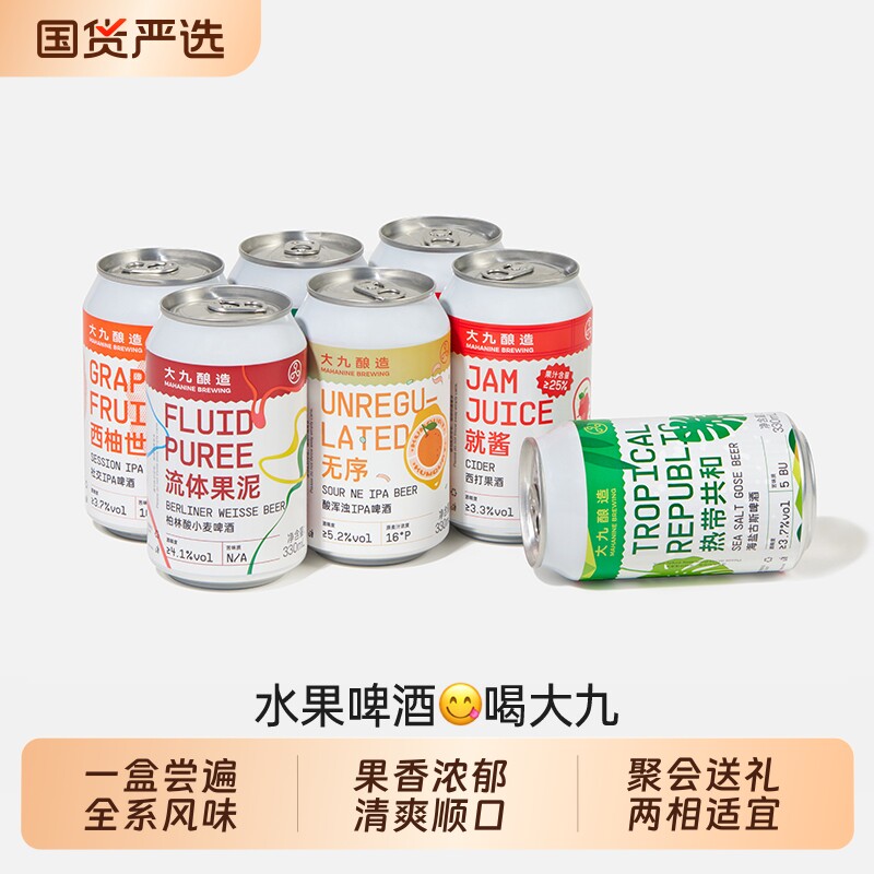 📚 大九酿造全家福精酿啤酒果泥西柚水果果啤小麦ipa330ML易拉罐微醺
