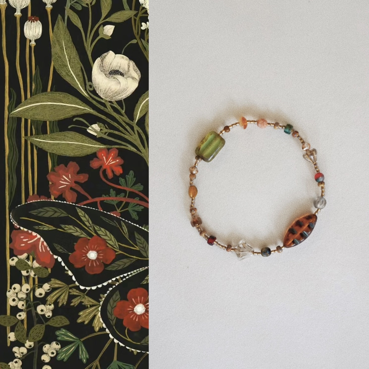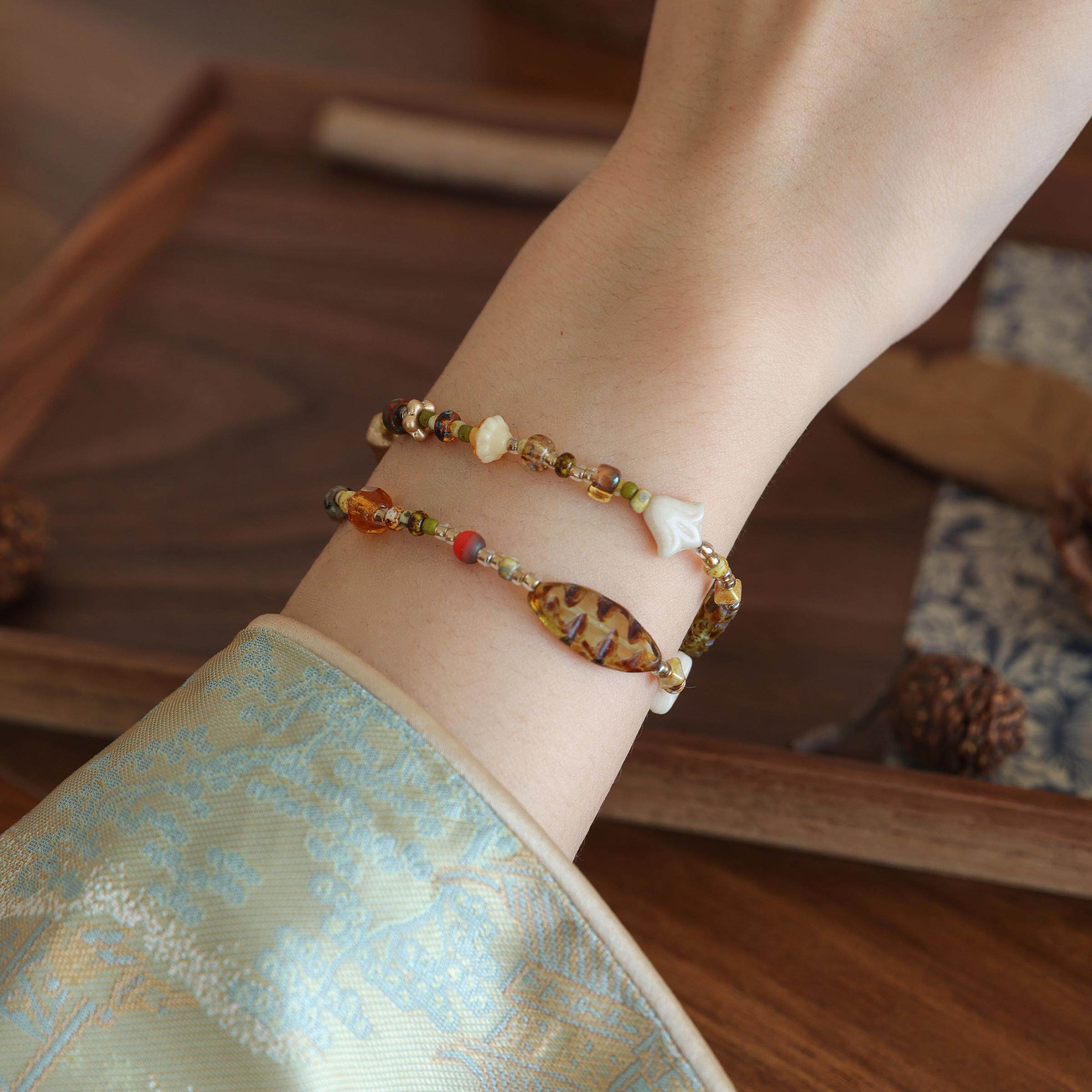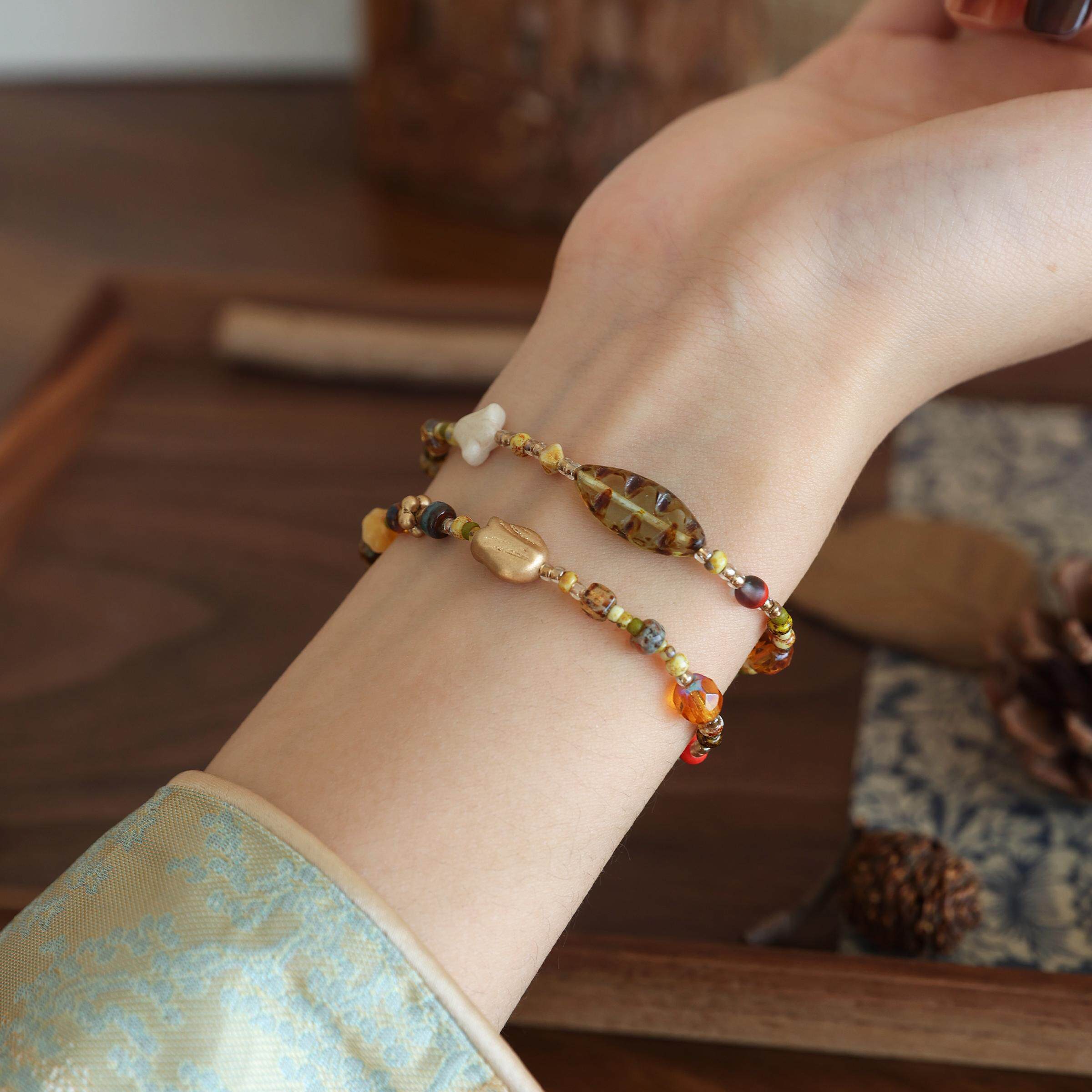 📚 QIANTAO「和枫·绿叶」原创vintage复古古董捷克珠手链女生手串
