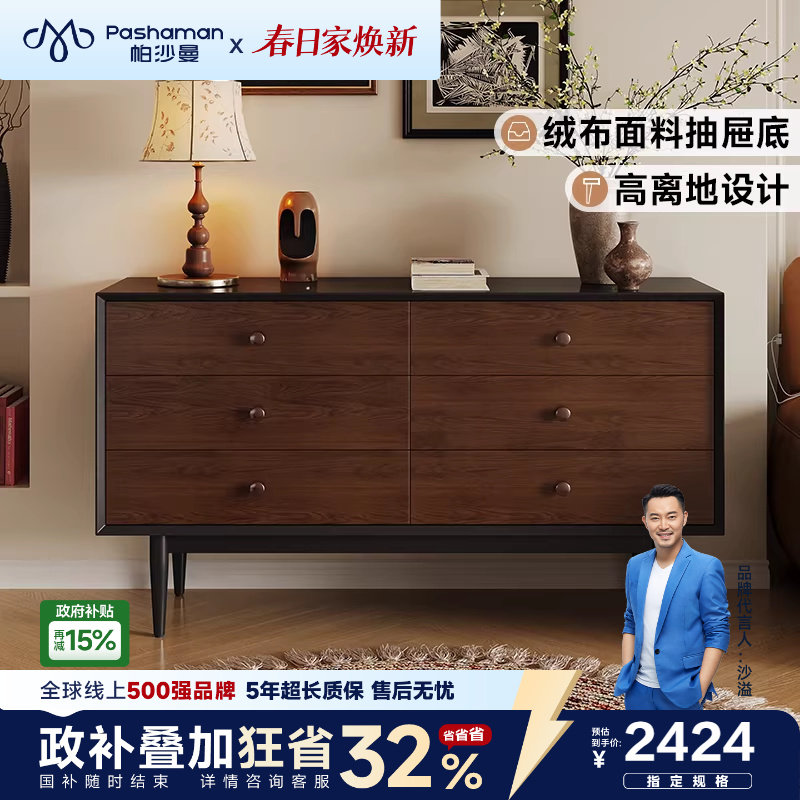 📚 帕沙曼 实木餐边柜中古复古风客厅靠墙家用收纳九斗柜柜子储物柜