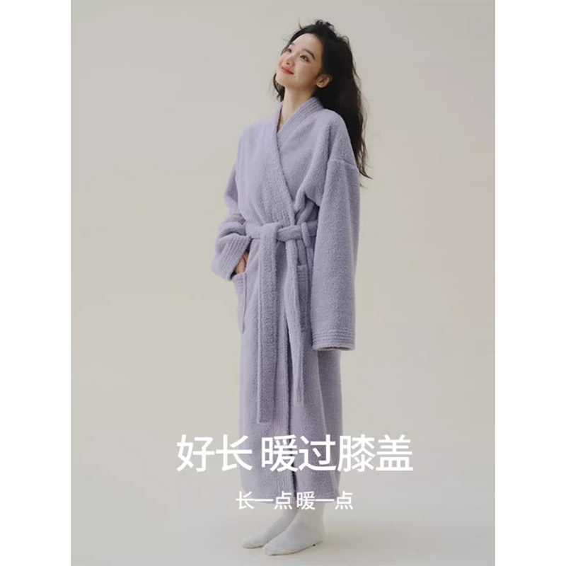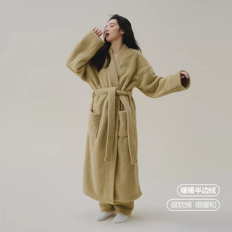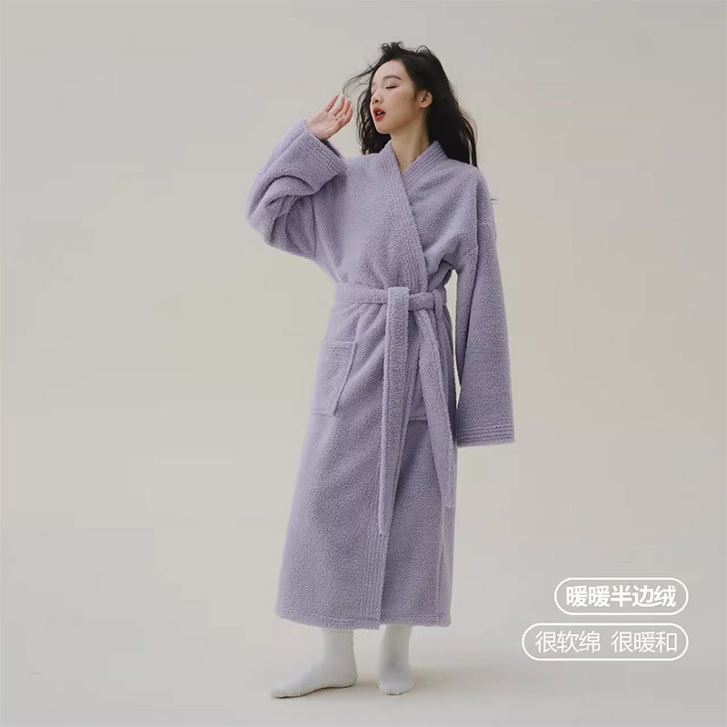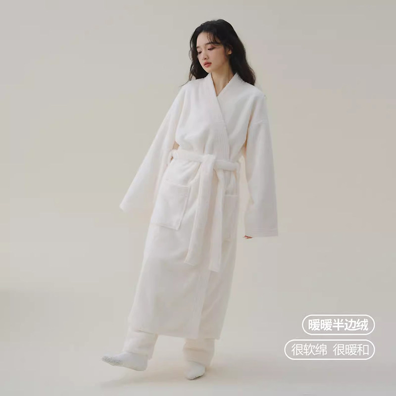 📚 睡袍女秋冬季新款半边绒加绒男士浴袍珊瑚绒情侣睡衣浴衣加厚冬天