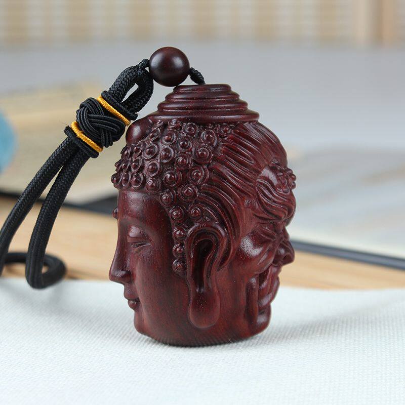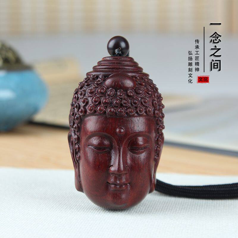 📚 小叶紫檀手工雕刻佛魔一念之间手把件佛头吊坠手玩把件红木工艺品