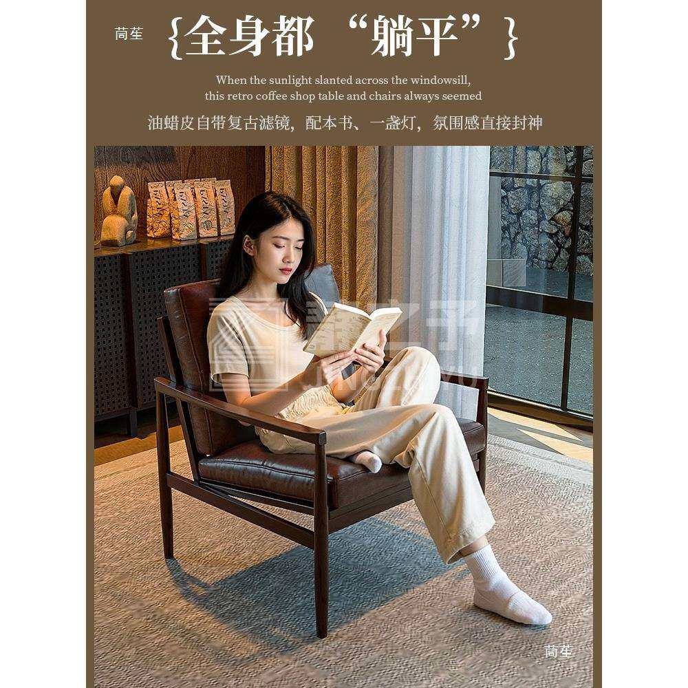 📚 复古美式单人沙发椅汉克椅客厅酒店民宿实木休闲椅阳台茶桌椅组合