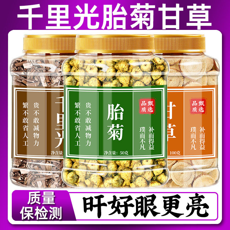 📚 千里光菊花甘草茶中草药正品官方旗舰店泡水喝明目生干草片中药材