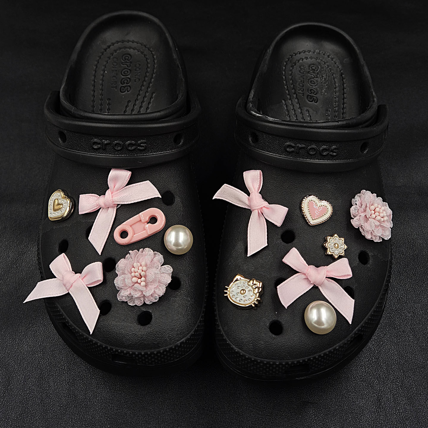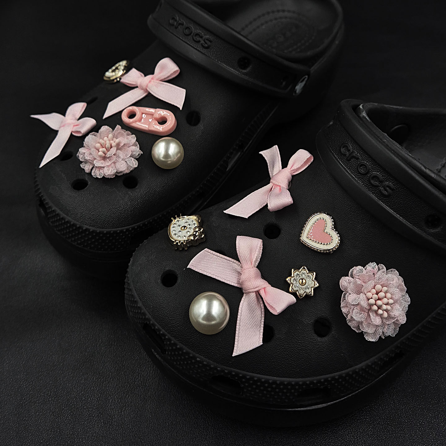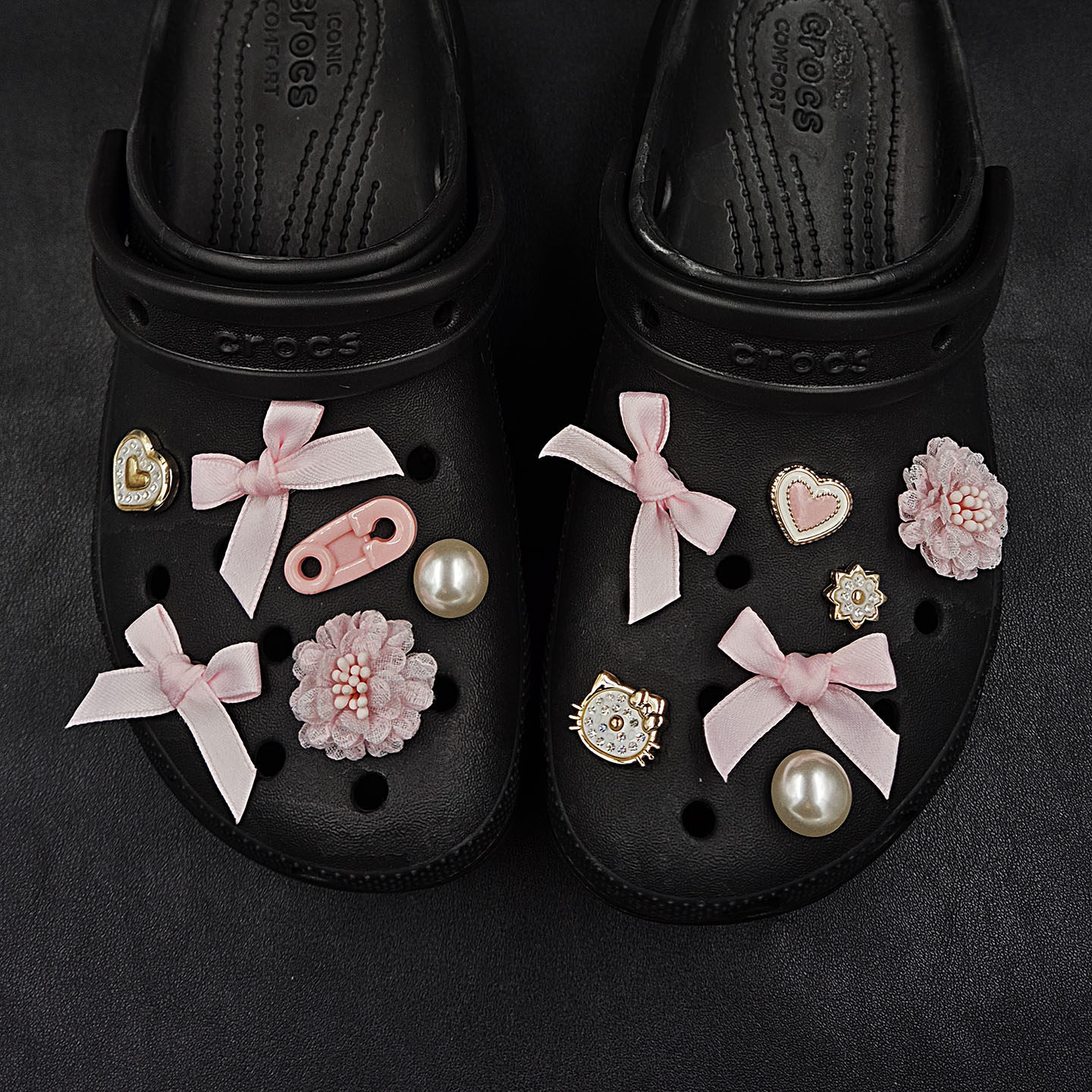 📚 适配骆驰crocs洞洞鞋配饰套装高级感鞋花丝带蝴蝶结芭蕾装饰配件