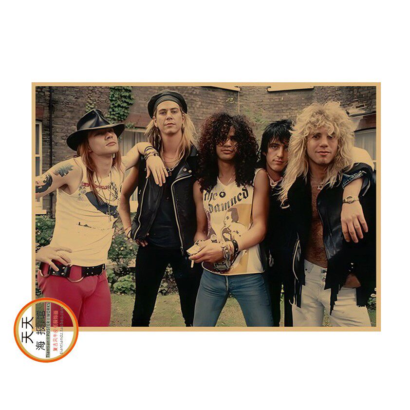 📚 枪炮玫瑰Guns N'Roses摇滚乐队海报 枪花复古牛皮纸装饰墙画823
