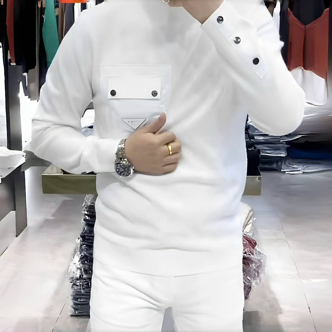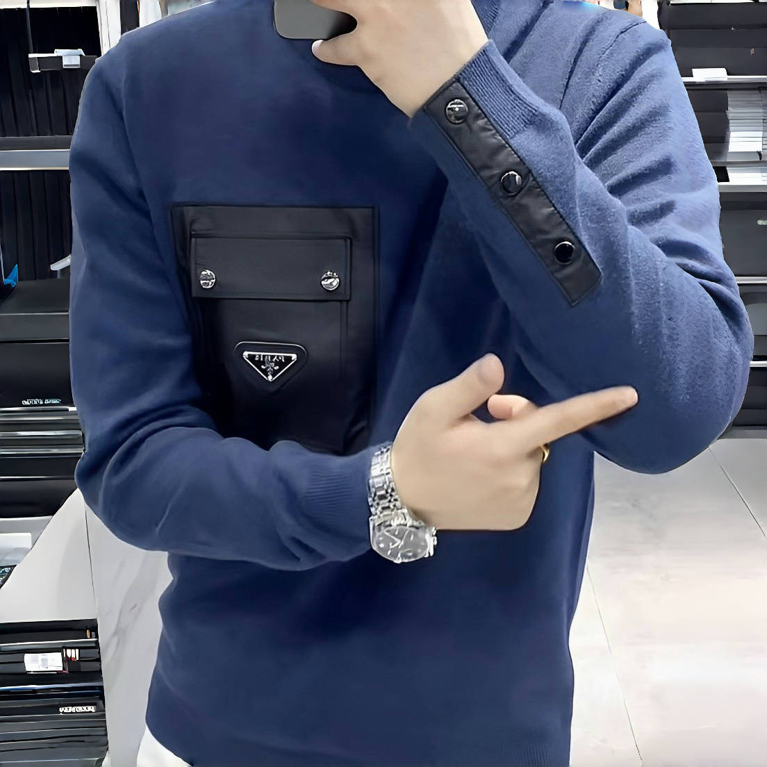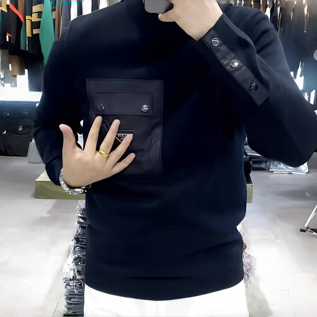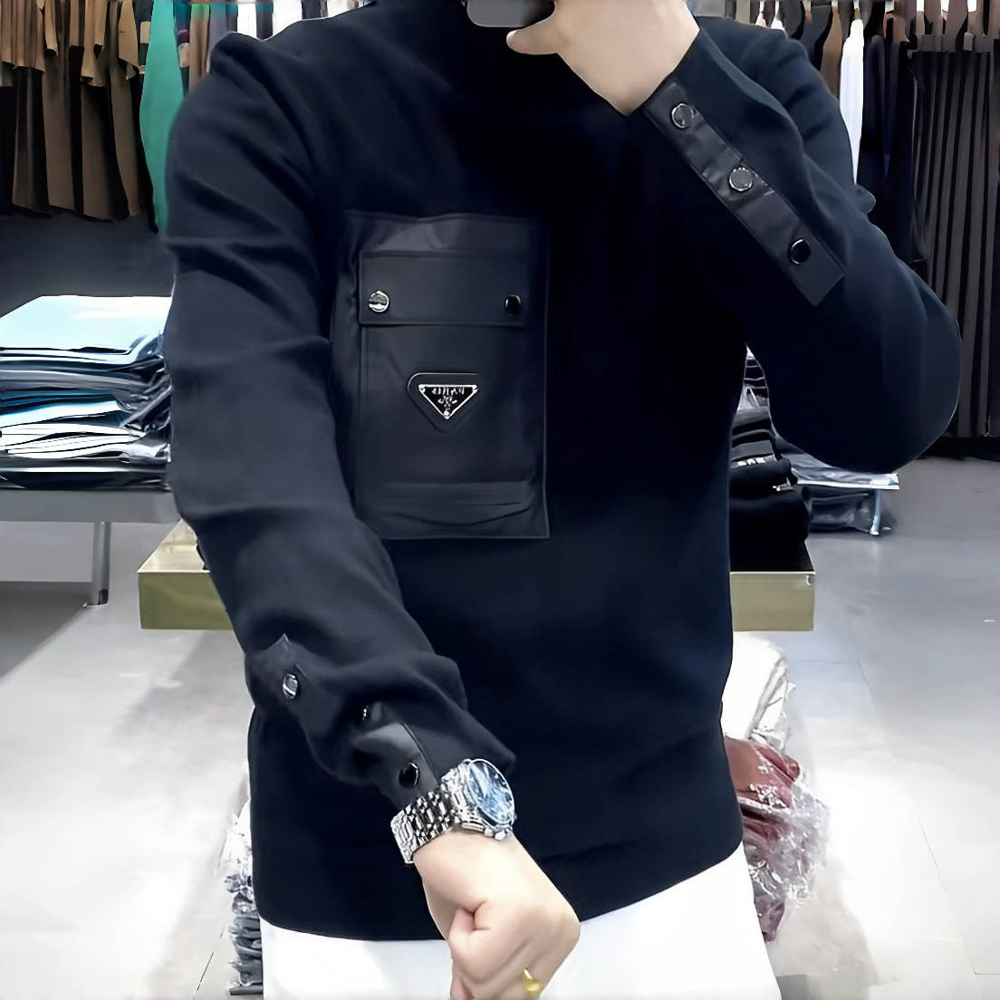 📚 打底衫男士春秋新款商务休闲时尚潮流修身百搭个性口袋拼接帅