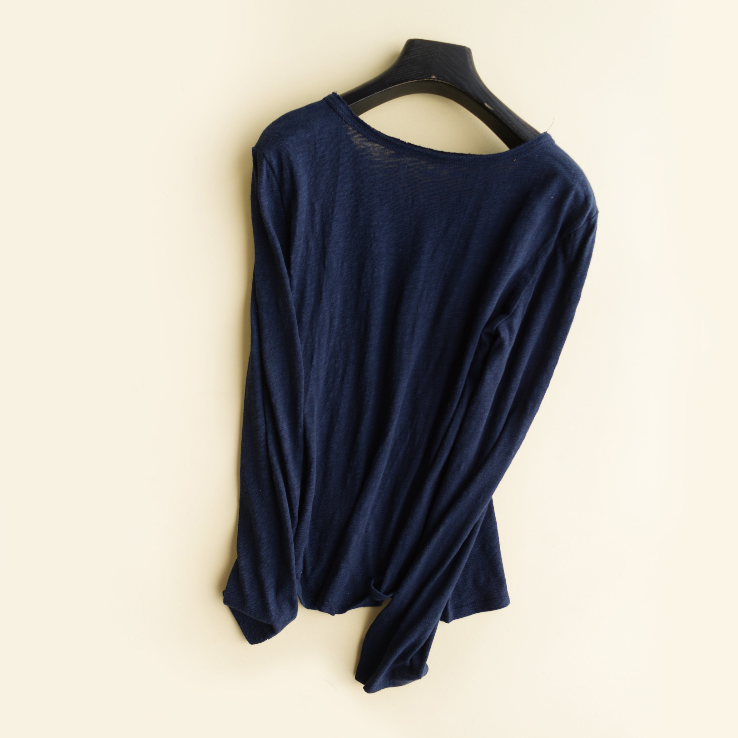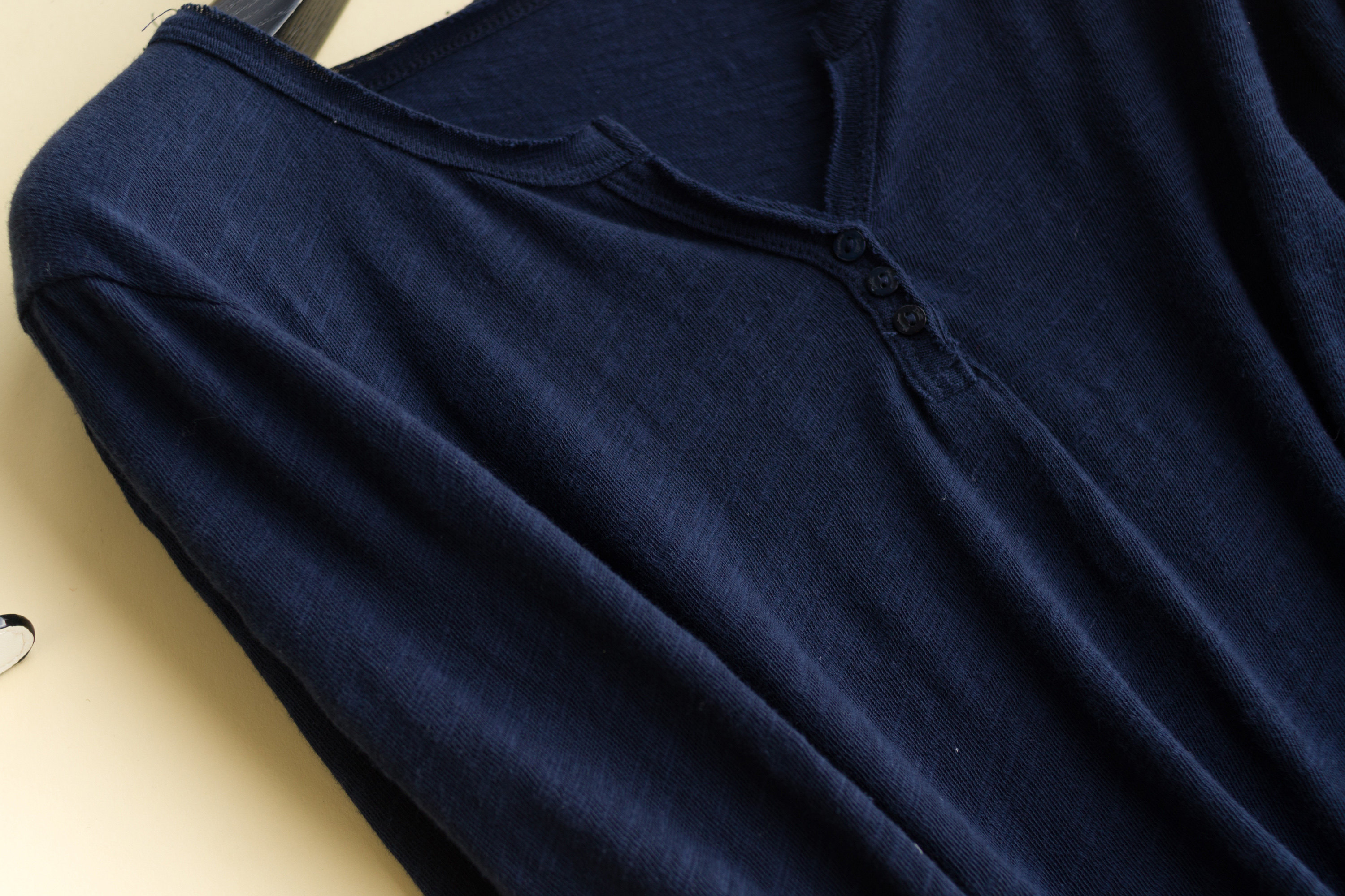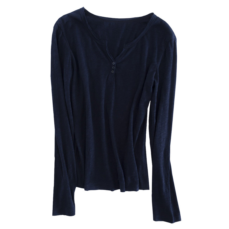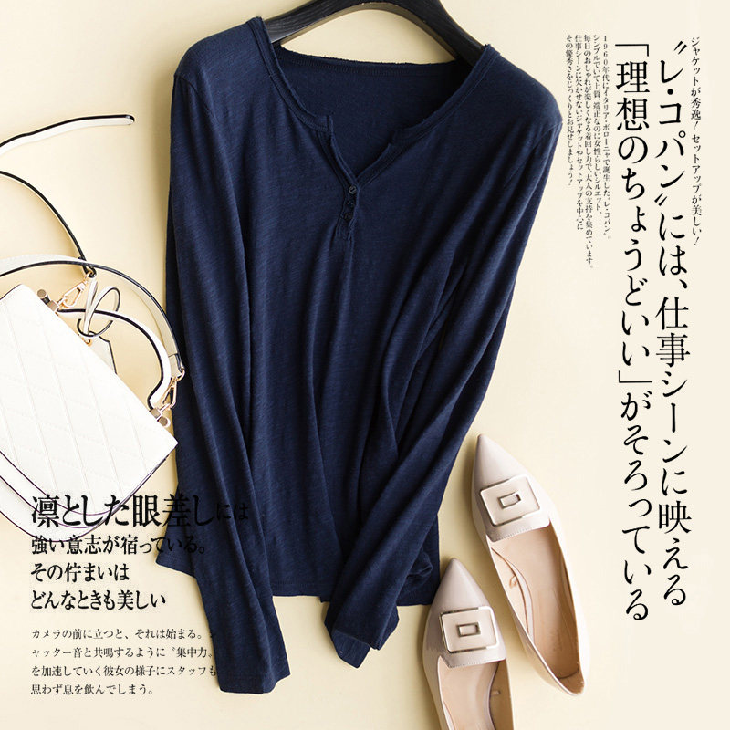 📚 外搭春游防晒长袖打底上衣 灵巧精致的三粒扣设计 V领棉质T恤衫女