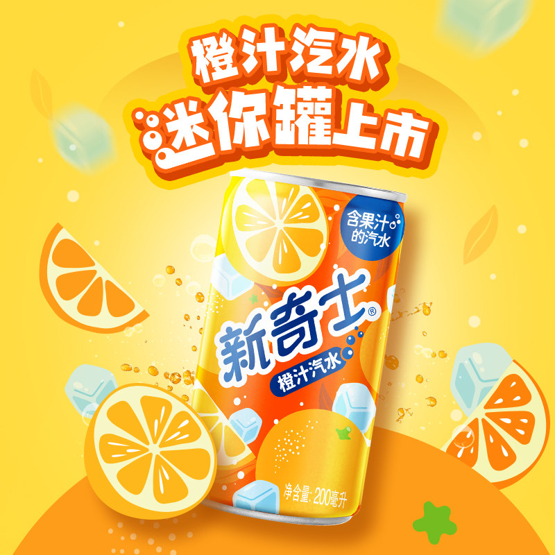 📚 屈臣氏新奇士水果味橙汁mini含汽碳酸饮料200ml*24罐整箱饮品