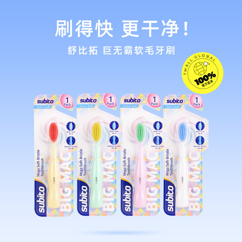 📚 【自营】舒比拓 巨无霸软毛牙刷多巴胺成人防滑易握一支装牙刷