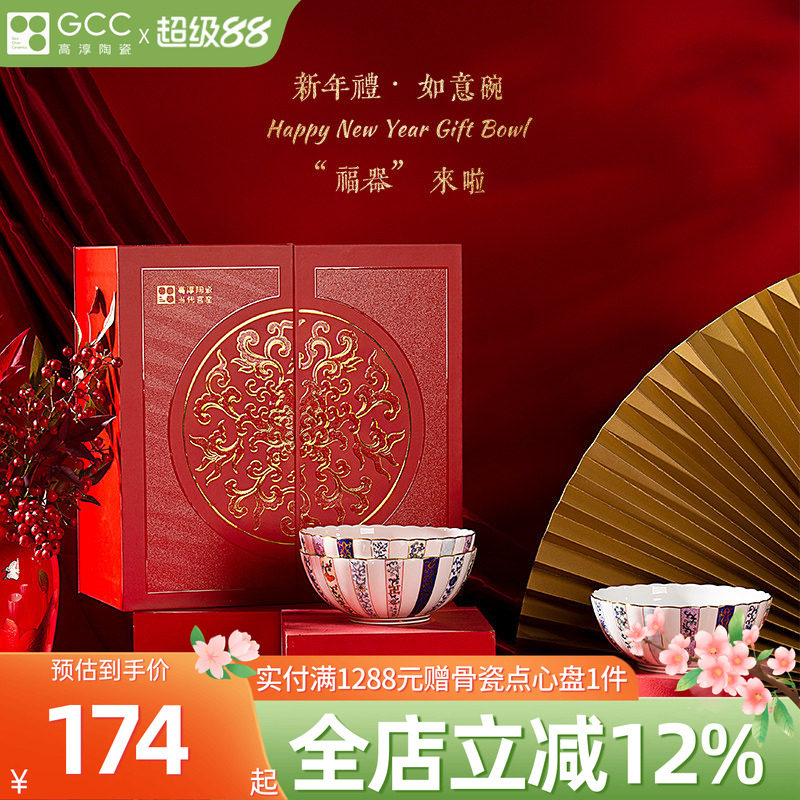 📚 高淳陶瓷新年如意碗饭碗家用中式陶瓷珐琅彩伴手礼喜庆套碗五福碗