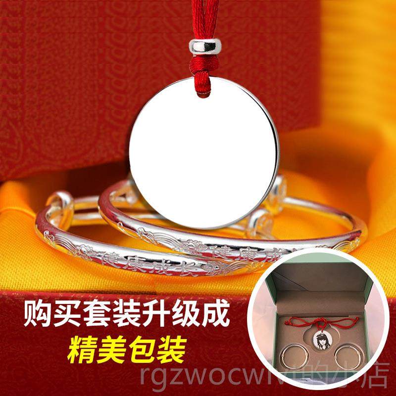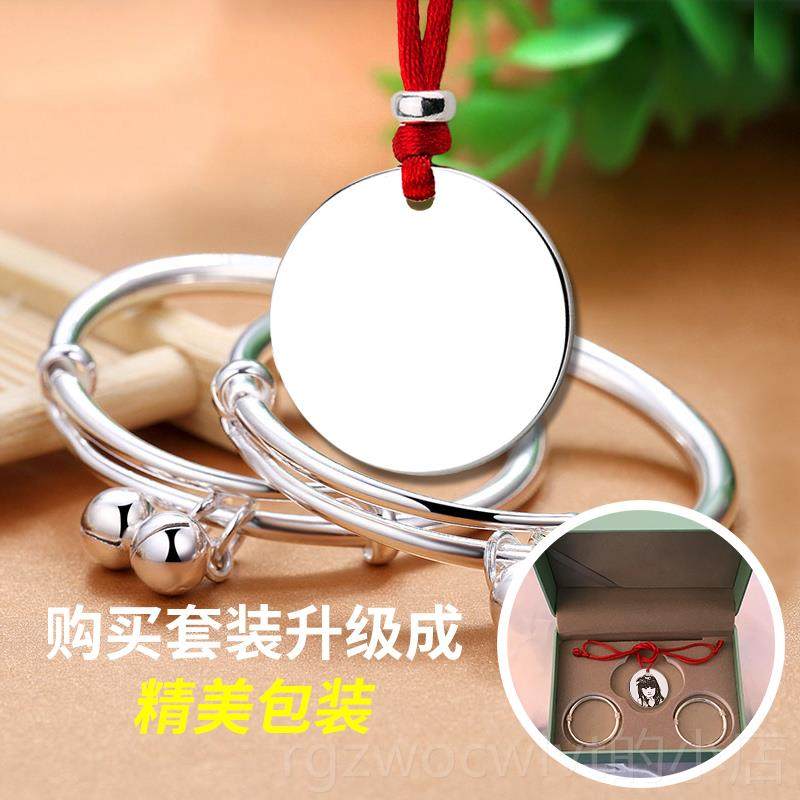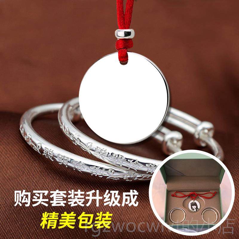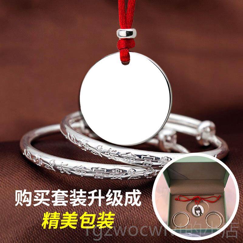 📚 新款999银圆牌项链男女挂宝9宝红绳吊纯坠儿童件刻字照片满月百天