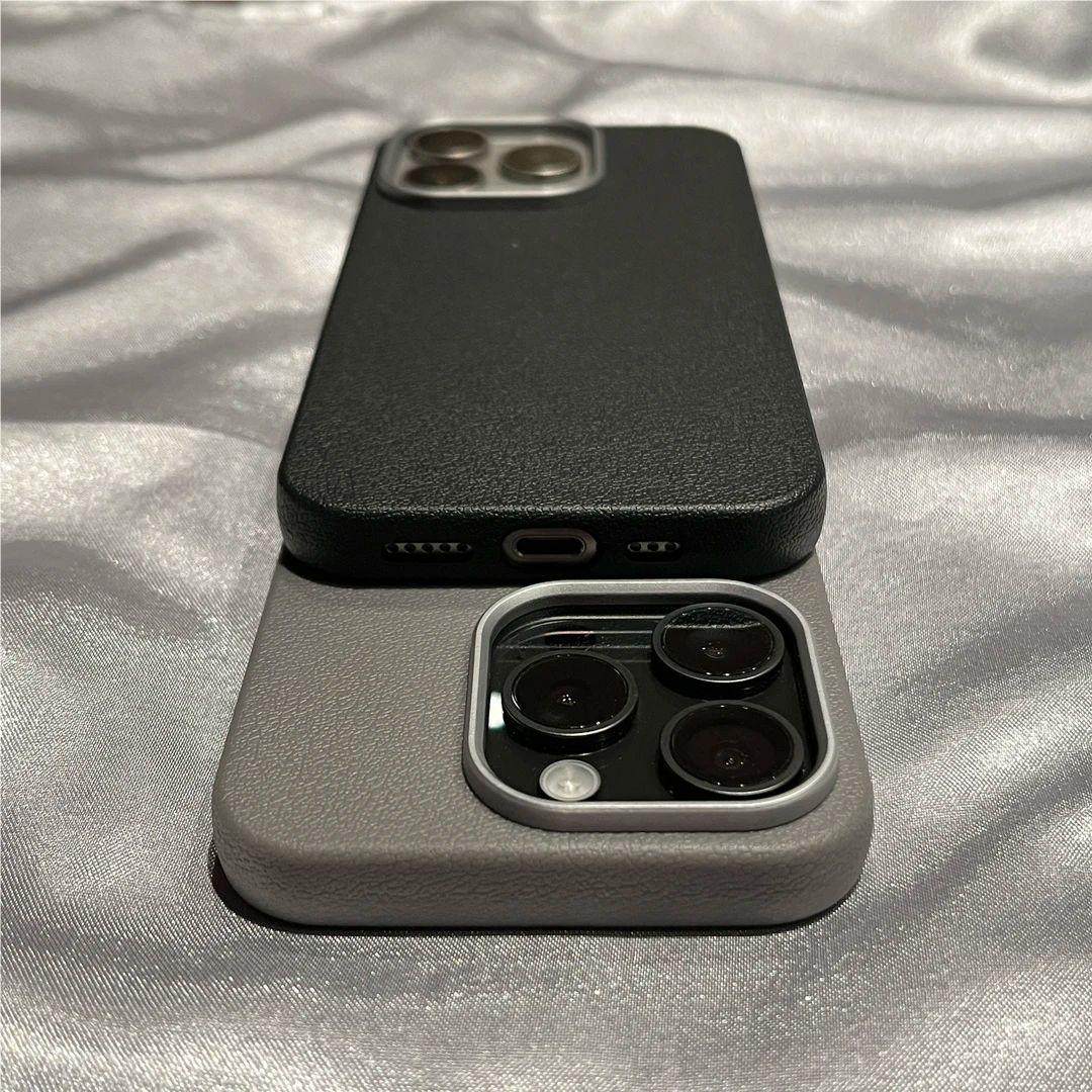 📚 复古荔枝纹炭黑色手机壳适用iPhone16新款苹果15promax素皮纹14plus电镀镜头框12/13pro个性11情侣保护套男款