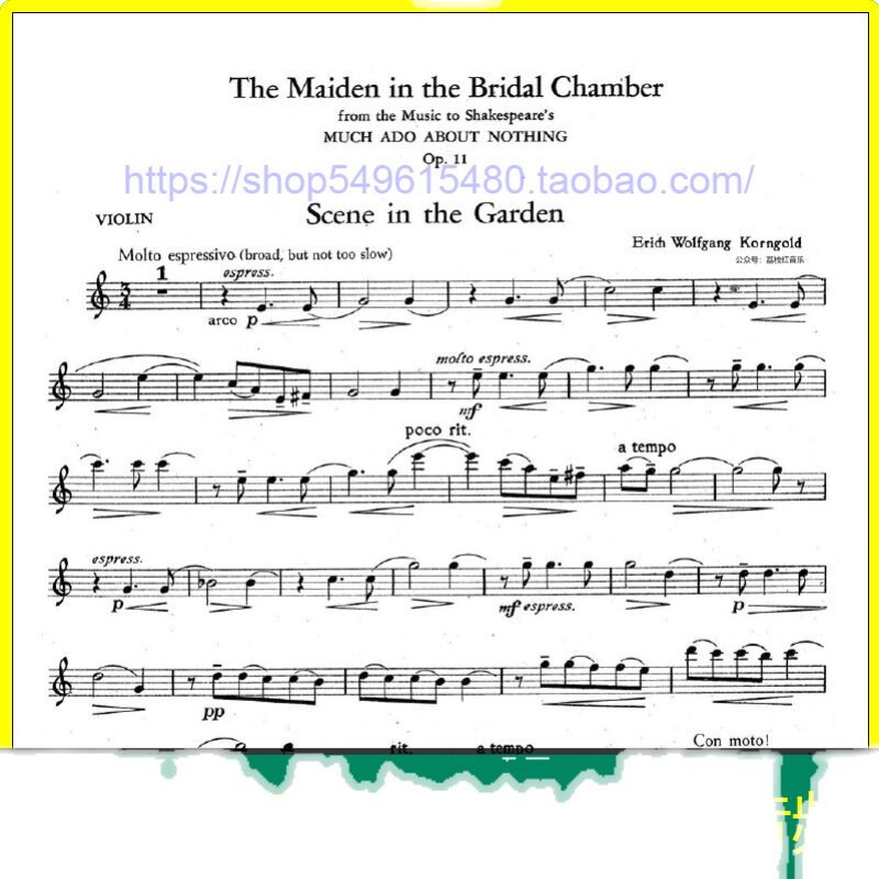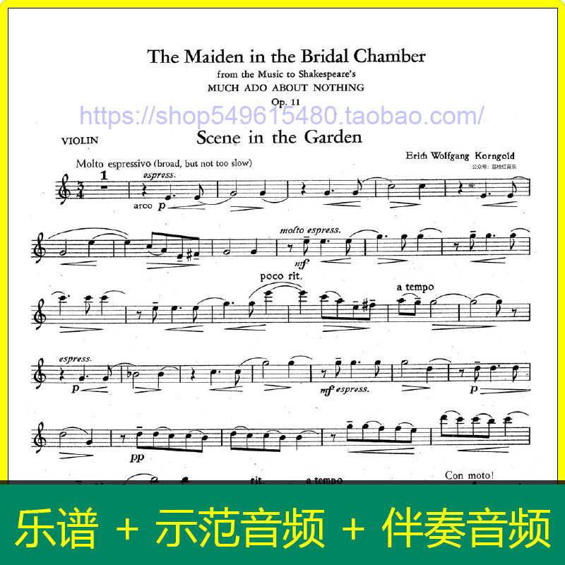 📚 科恩戈尔德 花园场景间奏曲 小提琴和钢琴总分谱 赠示范伴奏 v178