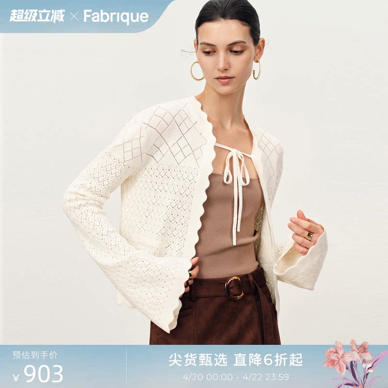 📚 【王艳同款】Fabrique法式菱形格镂空花边系带短针织开衫25年新品