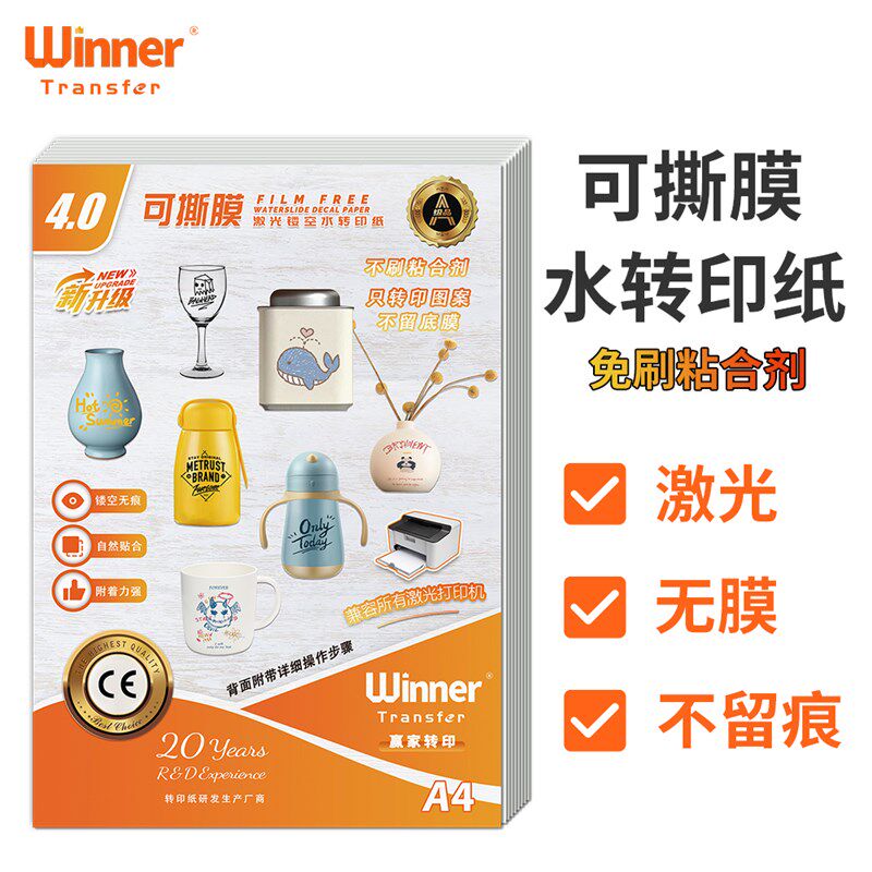 📚 WT赢家转印 可撕膜激光水转印纸镂空无痕无膜安全帽杯子logo印字