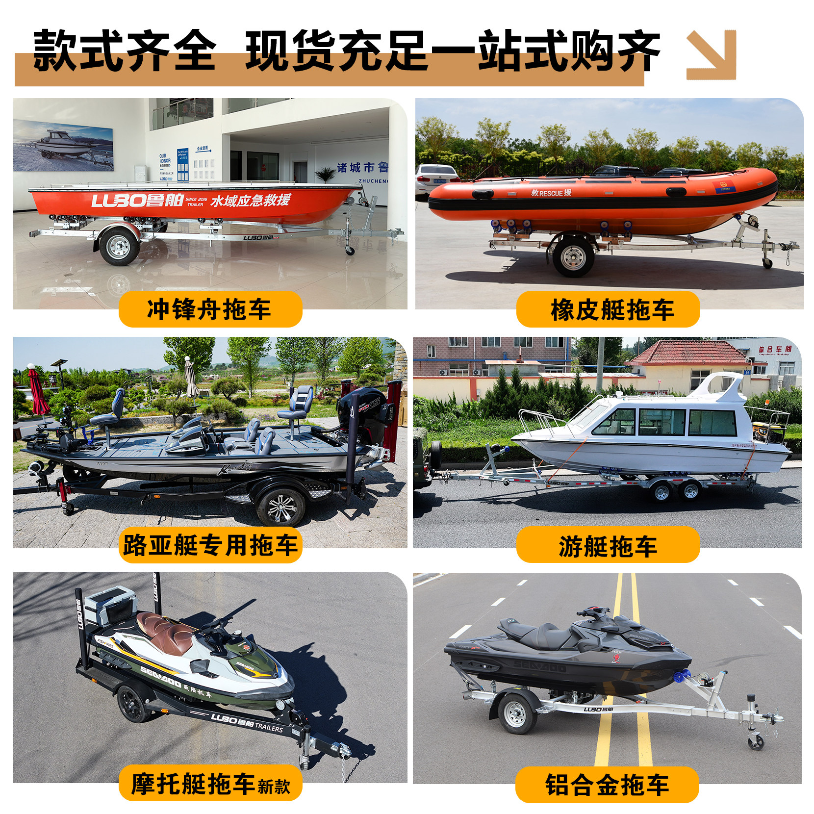 📚 鲁舶拖车摩托艇拖车橡皮艇冲锋舟拖车船拖船用路亚快艇游艇拖车架