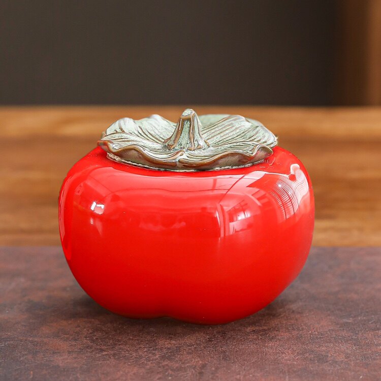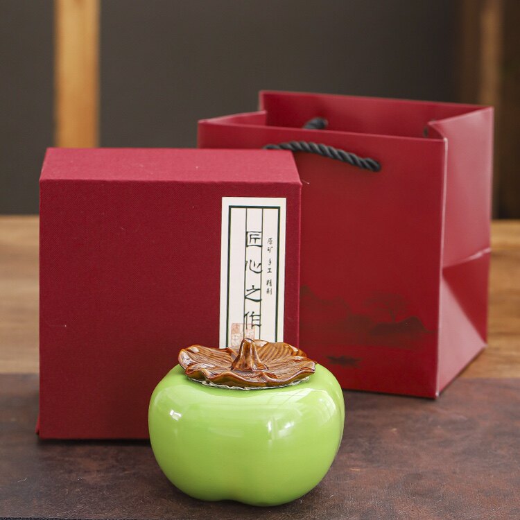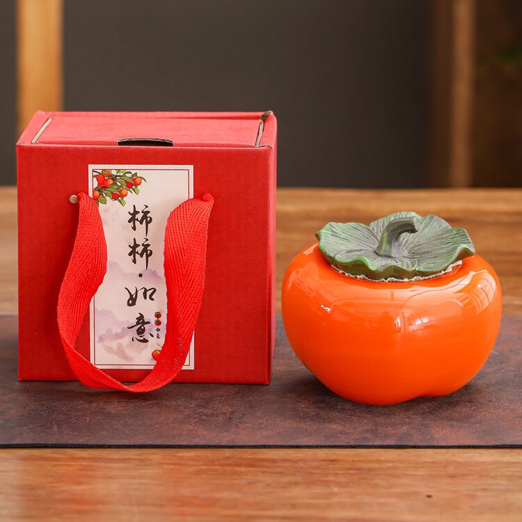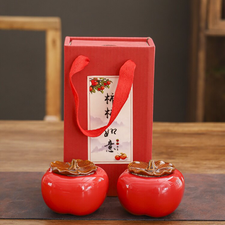 📚 陶瓷红柿子茶叶罐事事如意茶叶礼盒小号喜糖罐公司活动乔迁伴手礼