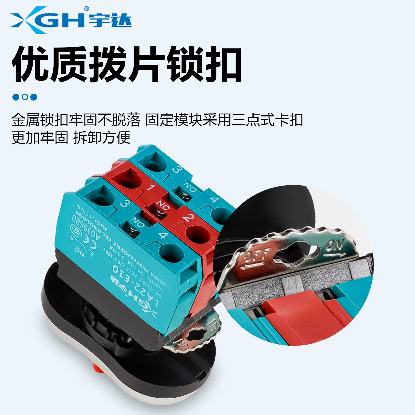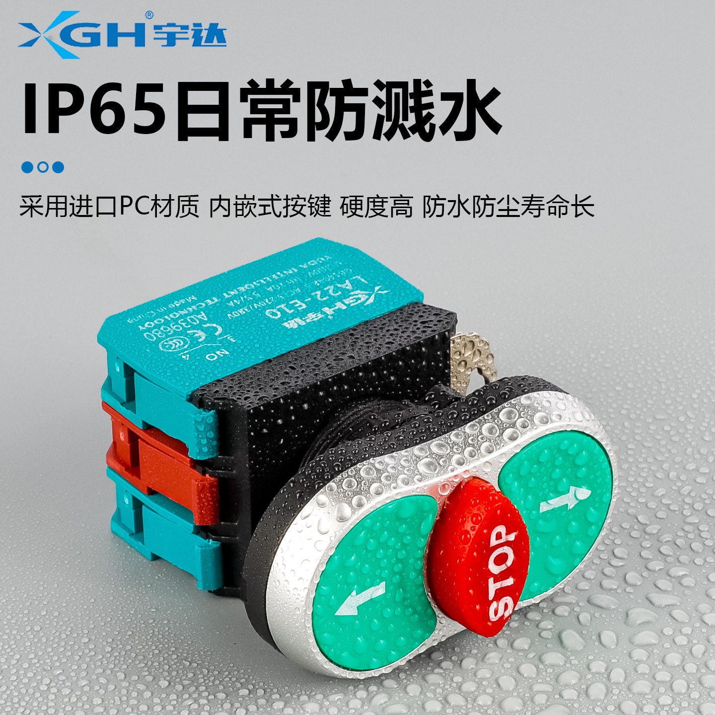 📚 宇达22MM模块带灯双位钮LA22E-11RD/STOP自复位三键控制按钮开关