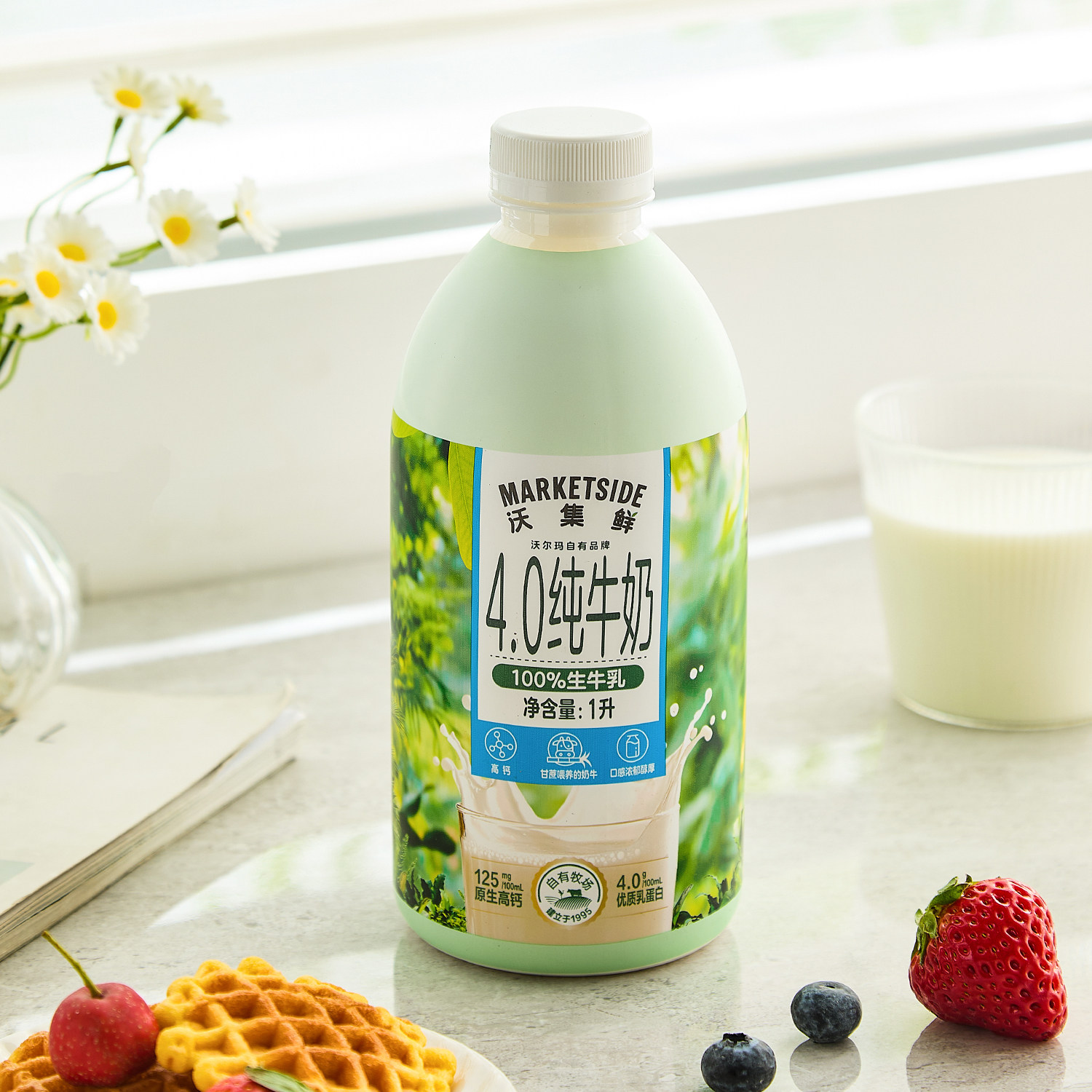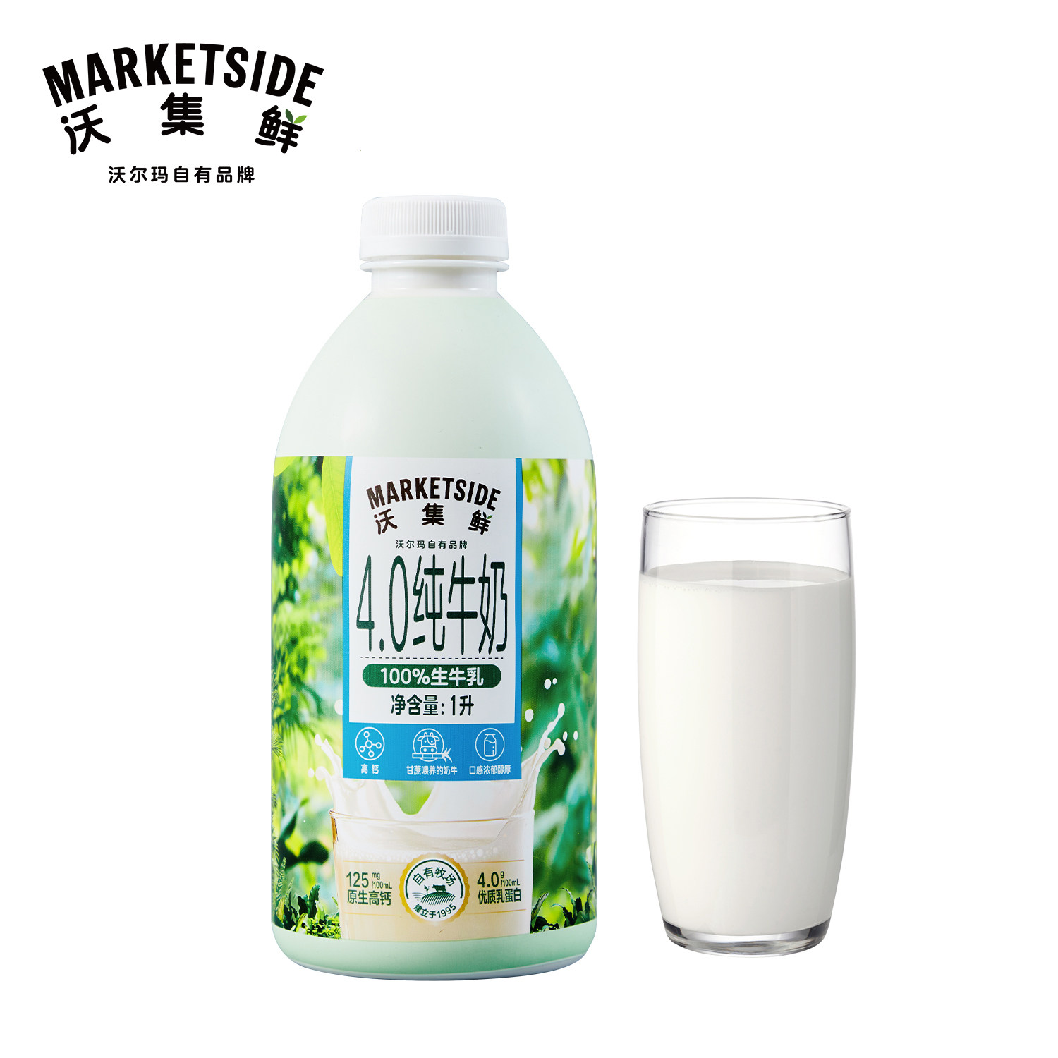 📚 沃集鲜4.0纯牛奶1L小绿瓶高钙高营养优质乳蛋白醇厚沃尔玛代购