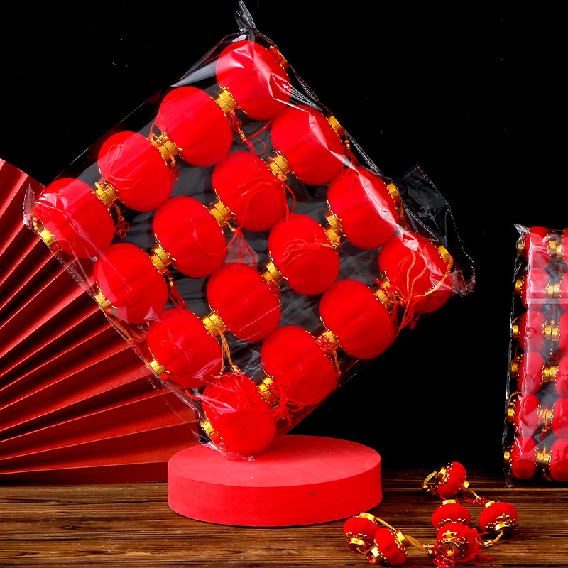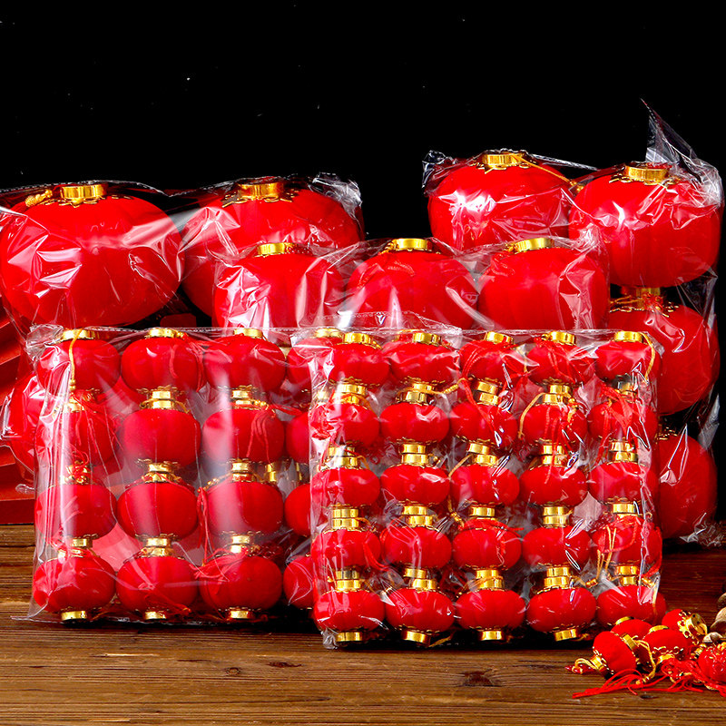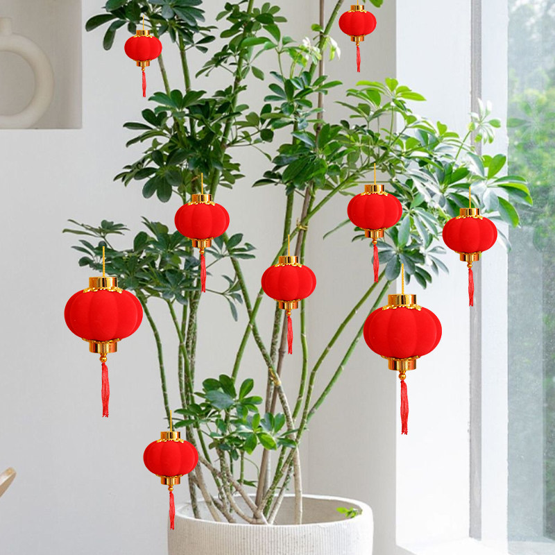 📚 植绒小灯笼挂饰盆栽绿植树上新年挂件结婚元旦春节装饰小红灯笼