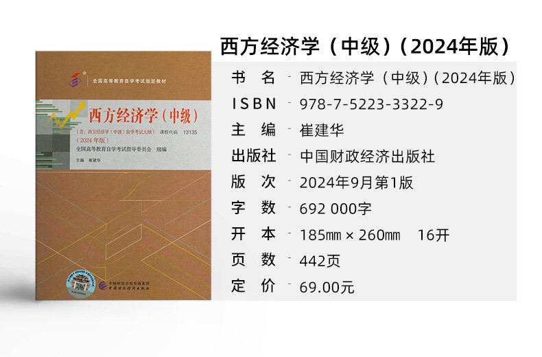 📚 成人自考教材 13135 西方经济学中级2024年版 附自学考试大纲 中国财政经济出版社 9787522333229 力源图书