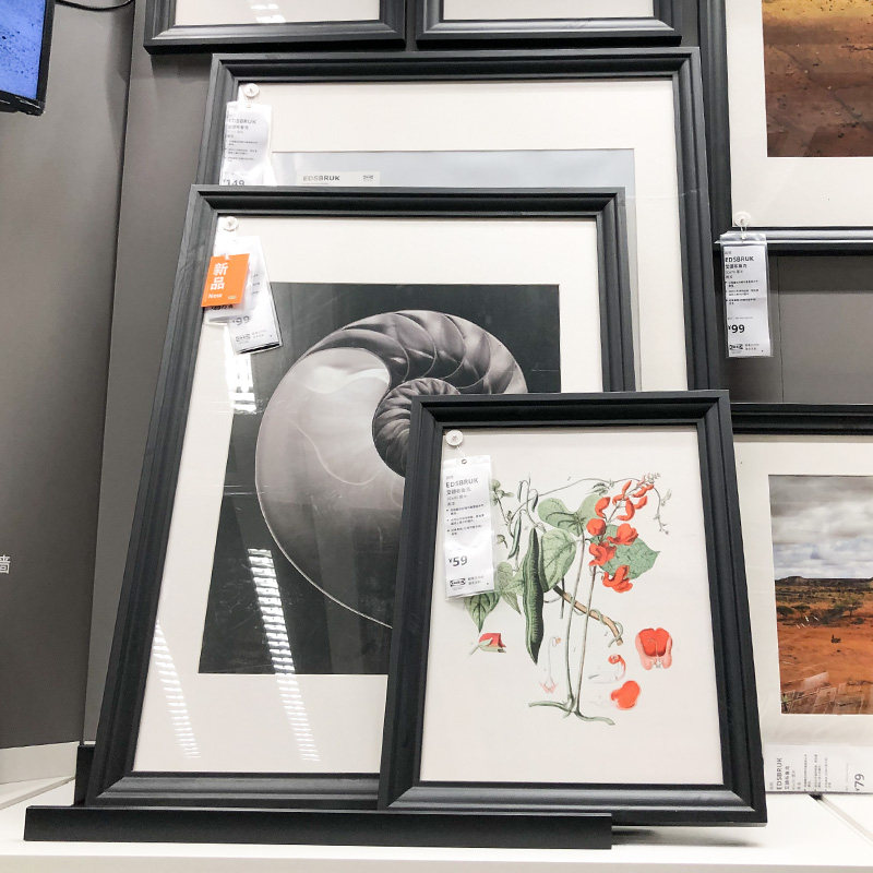 📚 IKEA宜家 艾德布鲁克 黑色相框白色粗线条挂画框带衬纸照片