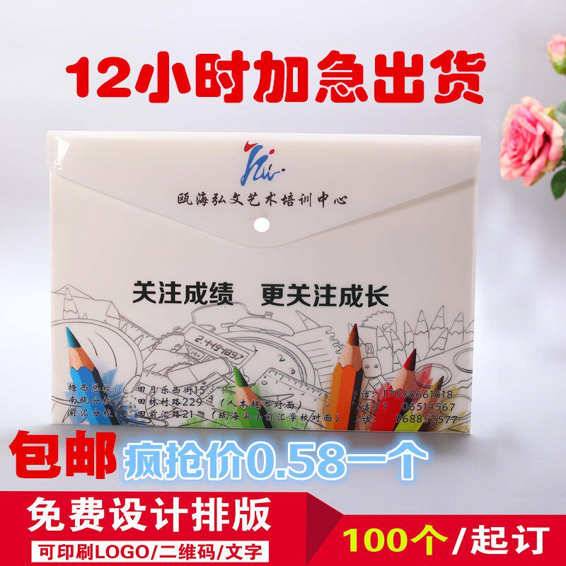 📚 定制广告文件袋塑料文件袋纽扣文件袋办公档案资料袋印loo