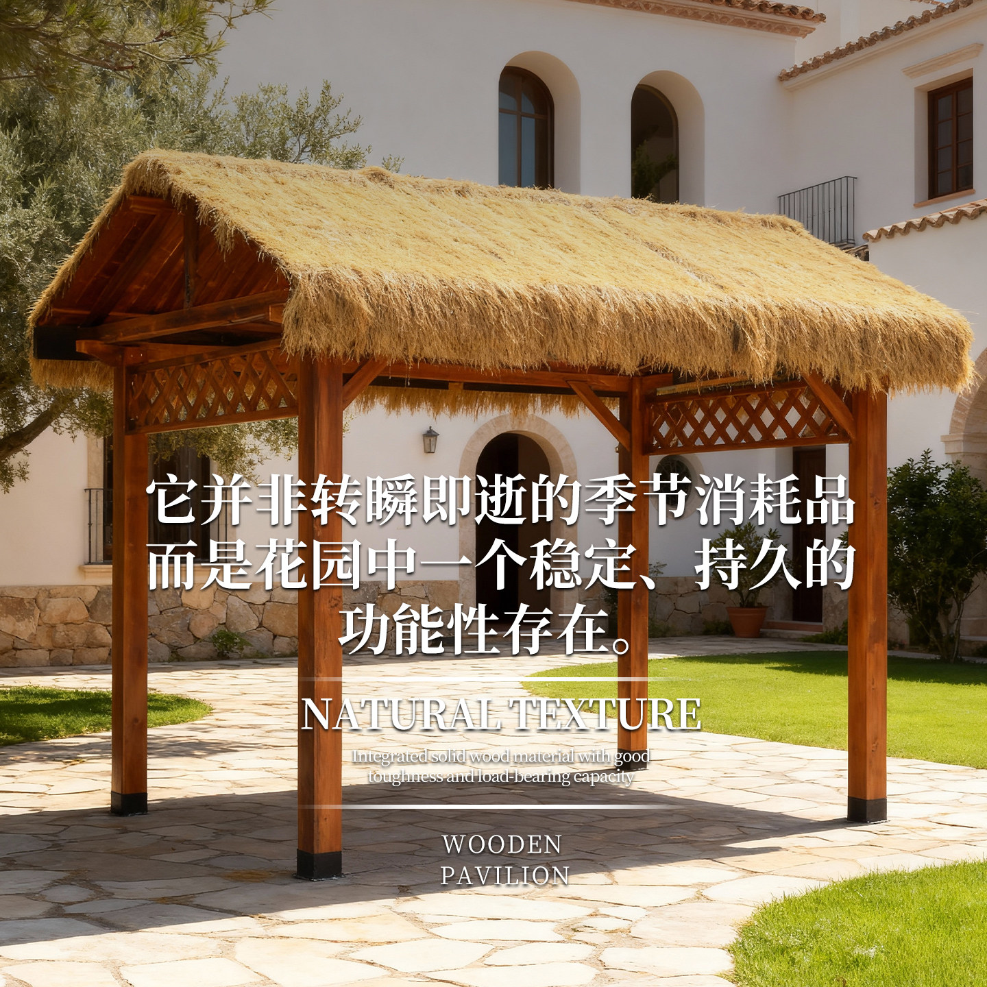 📚 民宿茅草凉亭户外庭院防腐木葡萄架子室外别墅院子装饰实木遮阳棚