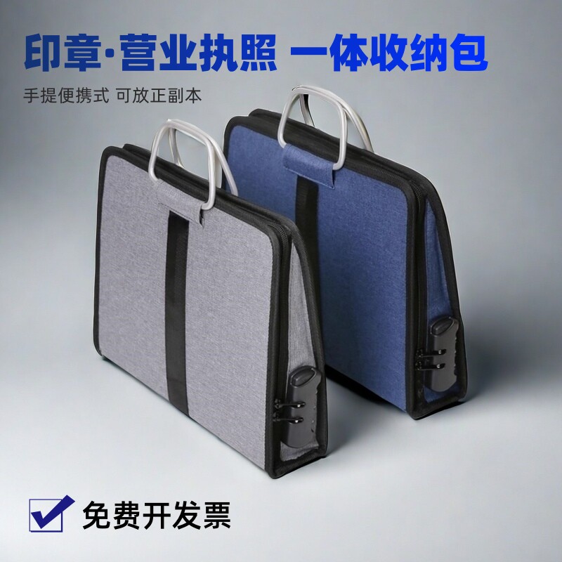 📚 公印章收纳盒营业执照收纳袋商务办公文件证件收纳包带密码锁便携