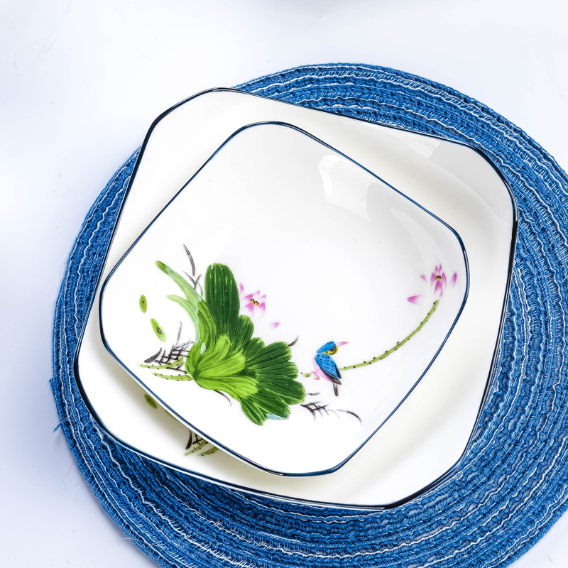 📚 八角盘骨瓷家用盘子异形餐具个性汤盘唐山陶瓷碟子欧式大小号菜碟