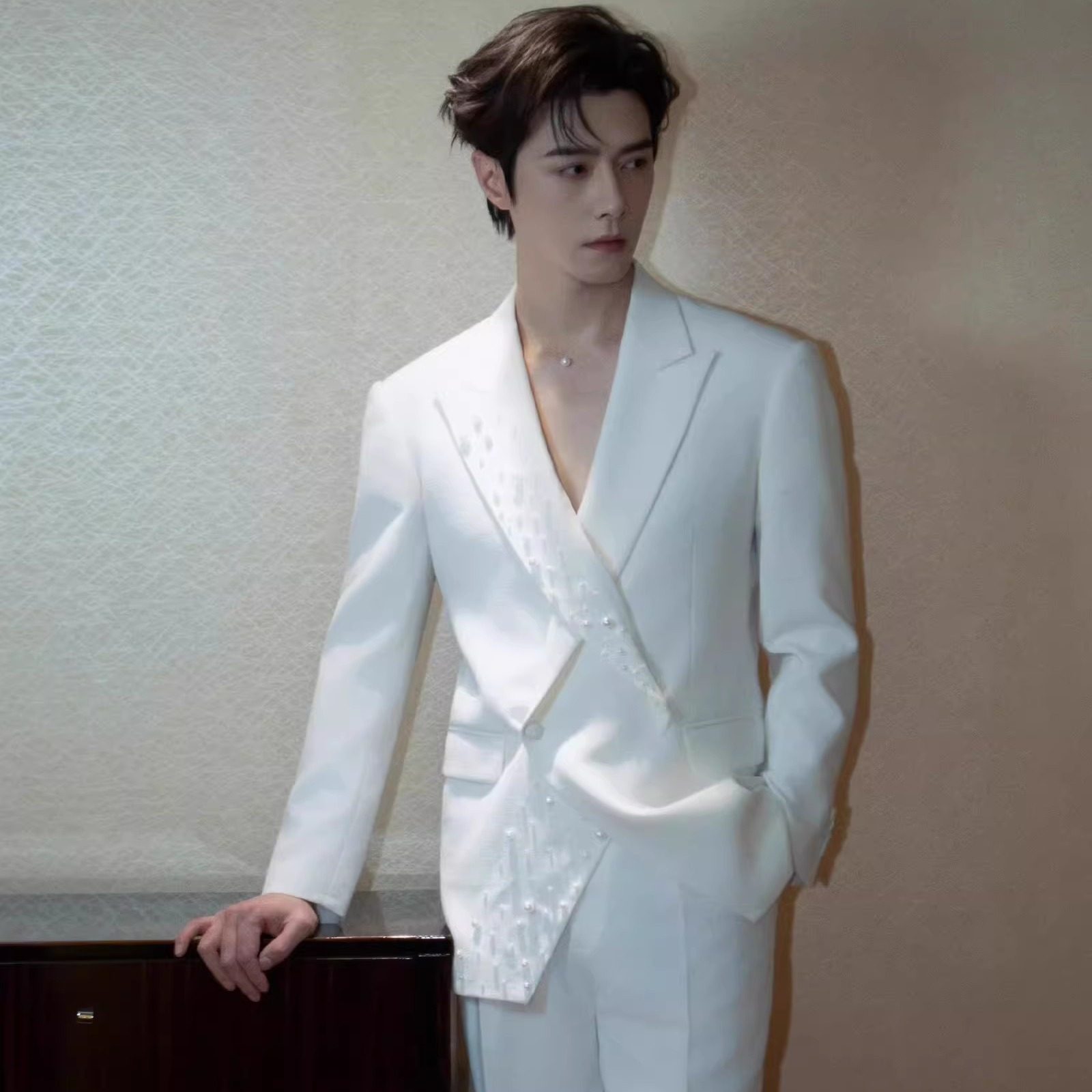 📚 方逸伦明星同款白色重工珍珠西装男高端轻奢宴会演出高级感西服潮